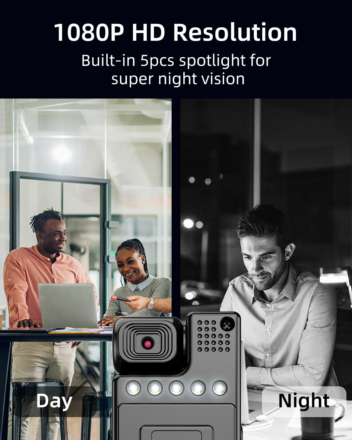 Vidcastive 64G Body Camera With Video And Audio Recording, 1080P Hd Police Body Worn Cam With 180 Rotatable Lens, Night Vision,