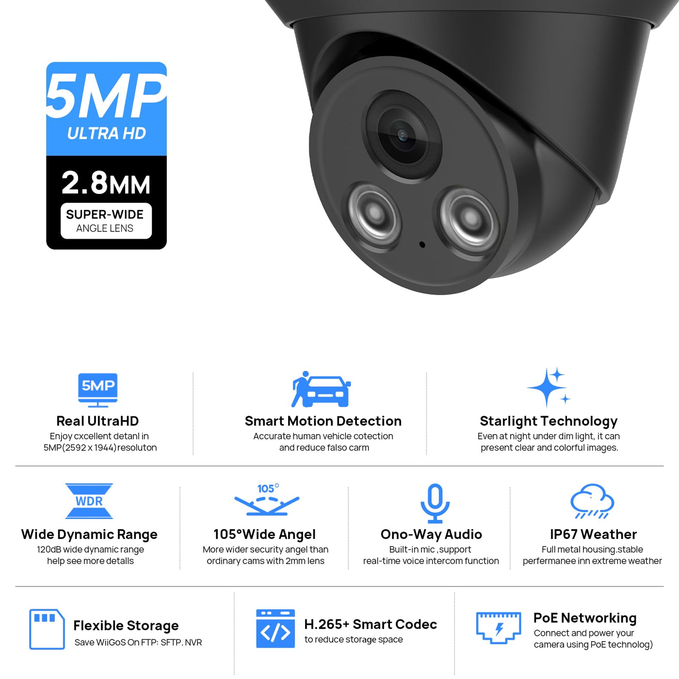 5Mp Poe Ip Camera Outdoor,5Mp Security Network Camera With Microphone,2.8Mm Lens,Smart Human And Vehicle Detection,98Ft Ir Night Vision,H.265+,Ip67.It Fits Indoor And Outdoor,Residential Areas,Retail Stores,Business.