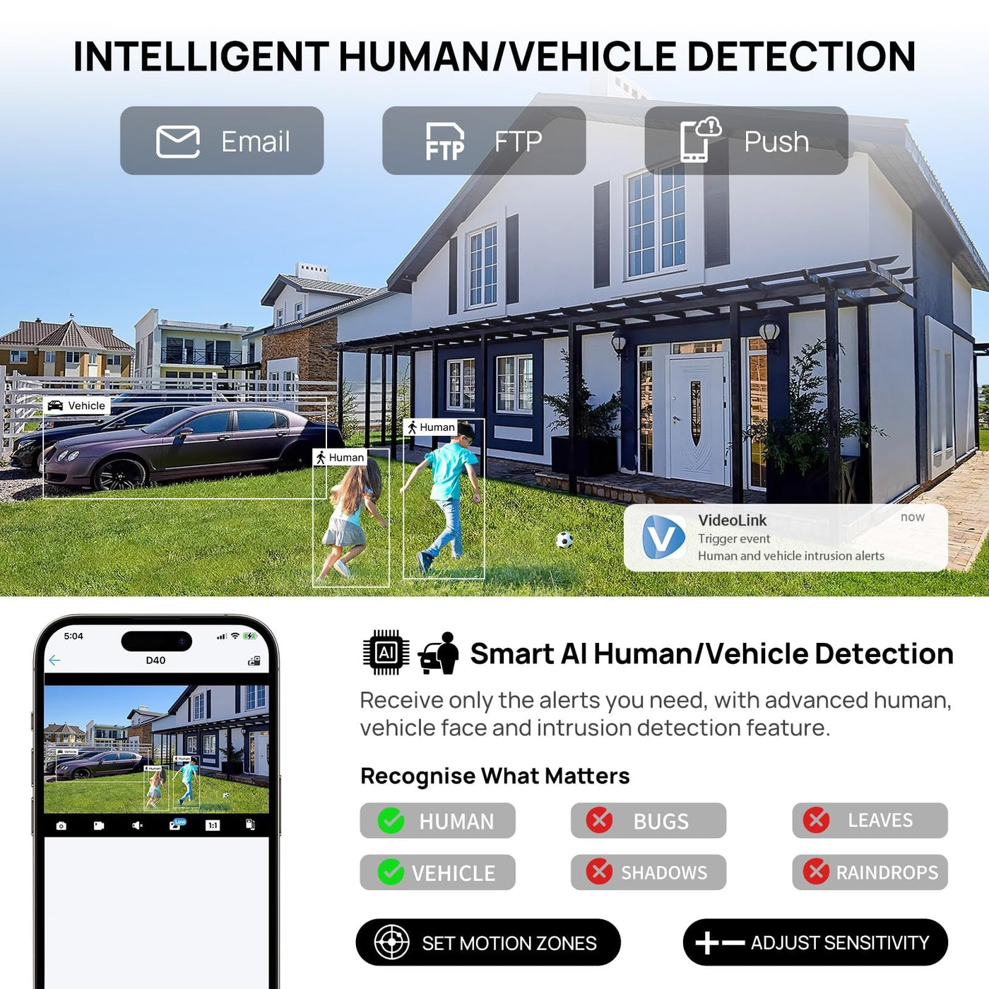 Vikviz 5Mp Poe Ip Camera Outdoor,5Mp Security Network Camera With Microphone,2.8Mm Lens,Smart Human And Vehicle Detection,98Ft I