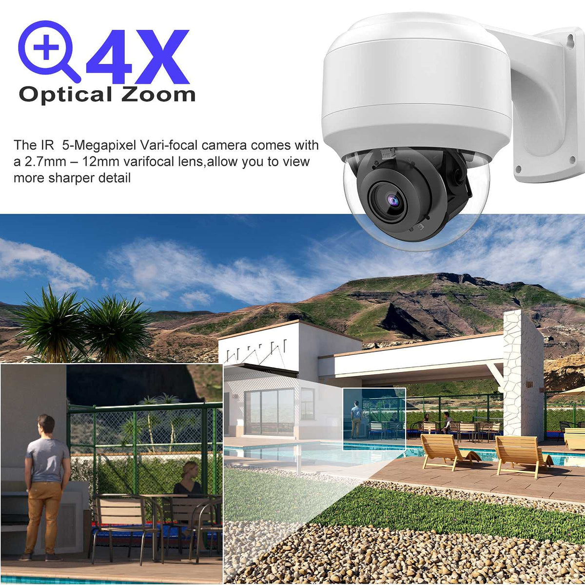 Vikylin 5Mp Outdoor Ptz Poe Ip Camera With Mic/Audio, Security Speed Dome With Pan Tilt 4X Optical Zoom/2.8~12Mm Lens,98Ft Ir Night Vision, Ip66 Waterproof,Motion Detection
