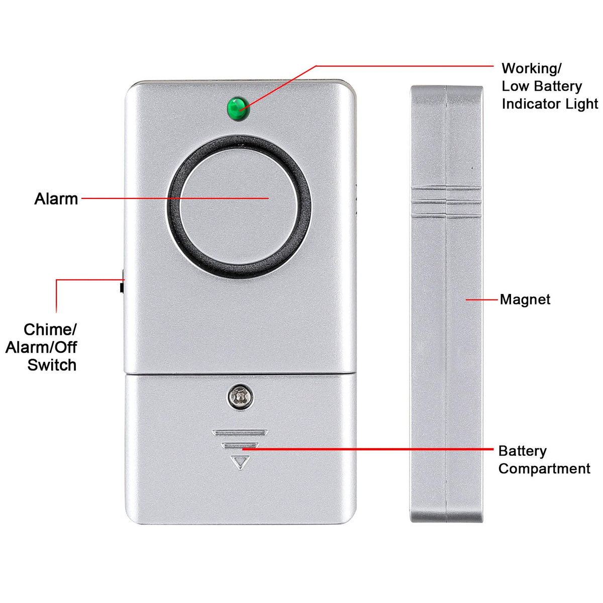 About Toeeson Door Window Alarms: Toeeson New Color Window Door Home Security Pool Alarms. Slim And Portable Enough To Take With On Business Trips And Vacations, Keep Yourself And Your Property Safe And Security. With Low Power Indicator, Easily To Replace Your Lr44 Batteries With Screw. Perfect For Preventing Kids And Babies Going Out The House Without Notice, Protecting Your Home Or Office Whether You Are In Or Out. The Intelligent Furnishing With Handsome, Decent Appearance, Also Be Economical And Practical. Magnetic Sensor Switch Detects Entry. Easily Mounted To Windows Or Doors With Included Double Sides Adhesive Tape, Suitable For Your Cupboard, Shed, Garage, Toolboxes, Etc. To Prevent Potential Wandering Sneakers.Features:1.New And High Quality2.Environmental Economy3.High Temperature Resistant, Corrosion Resistant4.Convenience In Installation5.Super Environmental Suitability And Stability6.Dustproof And Insect Prevention7.Operated By 4 Pcs Lr44 Batteries8.Easily Mounted By Adhesive. Tape To Window Or Door Then Donespecifications:1.Sensor Type: Alarm2.Alarm Type: Sound3.Material: Abs4.Color: Silver5.Size: 2.94'' X 1.49'' X 0.49'' 6.Weight:30G 7.Package: 10 Packs.Toeeson New Slim Door Window Alarms Are Exactly What You Are Seeking For!