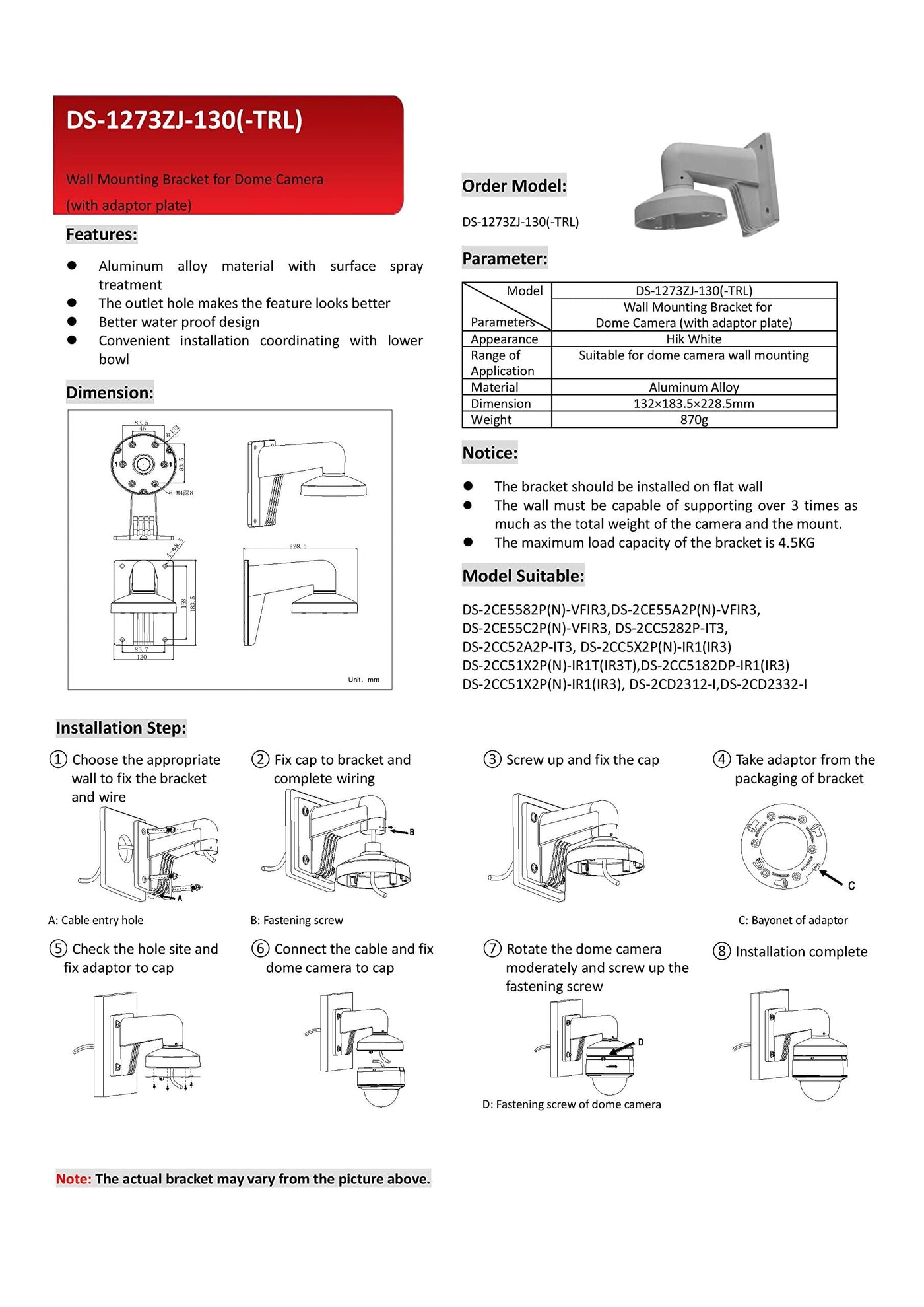 Wms Wml Pc130T Ds-1273Zj-130-Trl Wall Mount Bracket Compatible With Hikvision Turret Camera Ds-2Cd2343G2-I, Ds-2Cd2343G2-Iu, Ds-