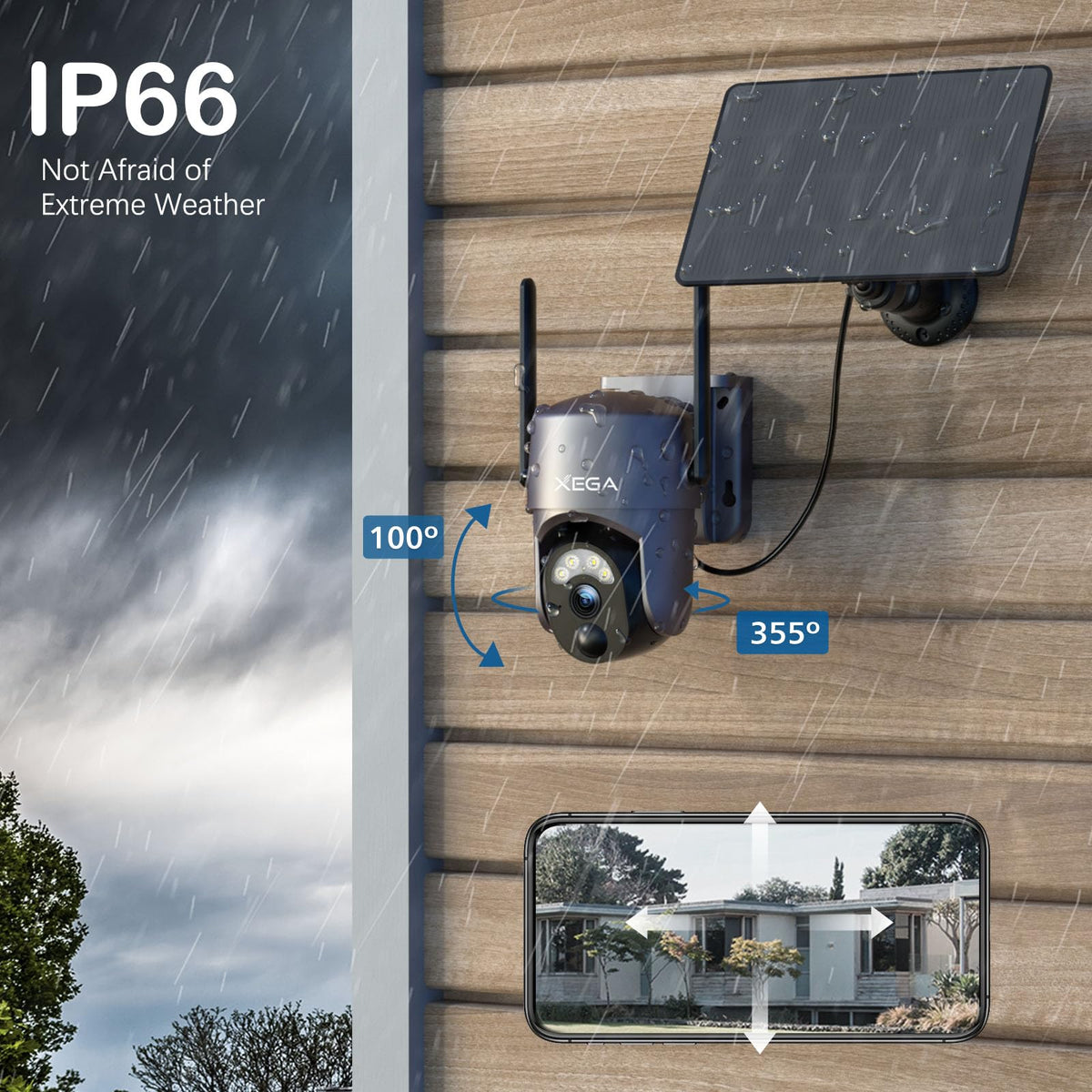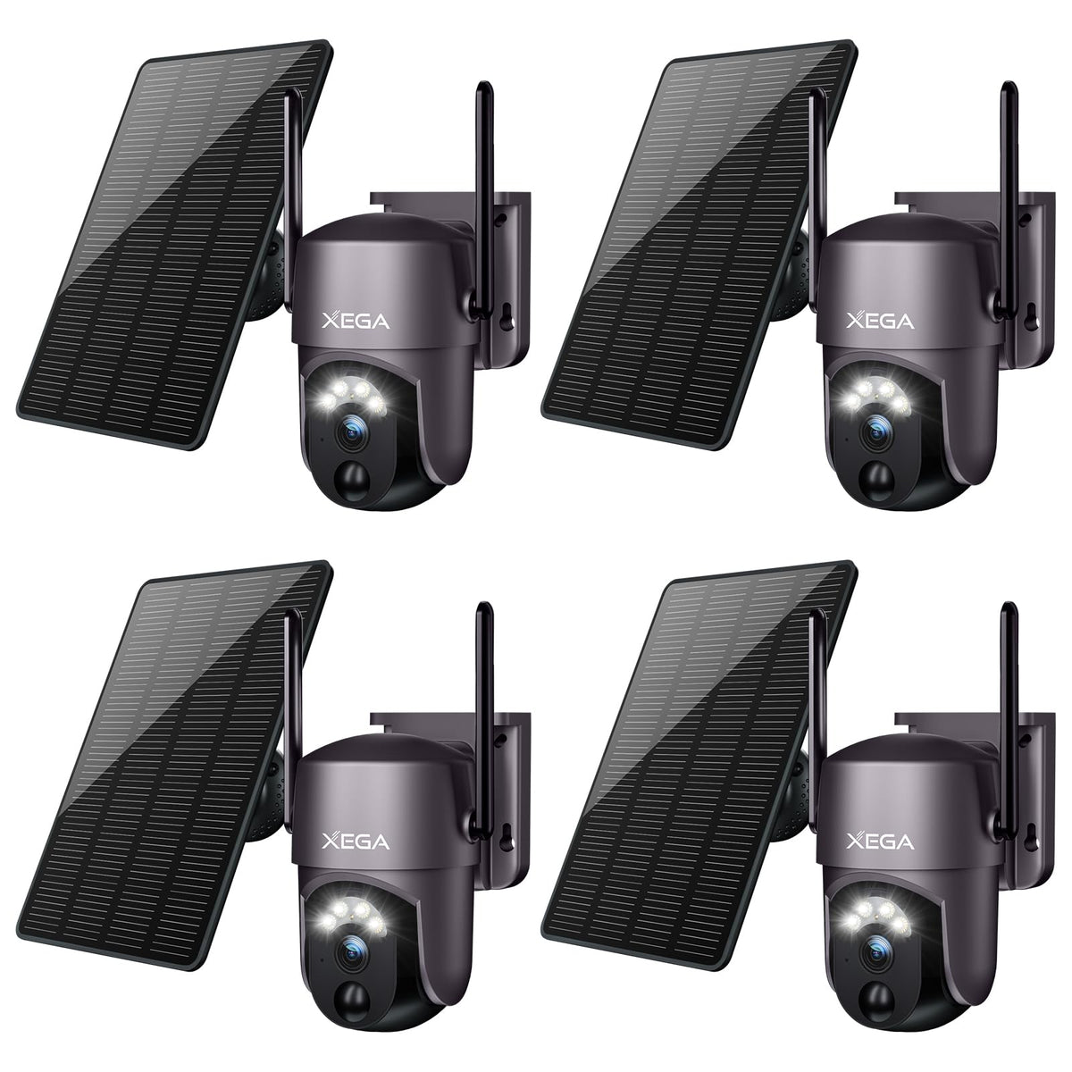 Xega 4 Pack Security Camera Wireless Outdoor 2K 360 Ptz Camera Solar Security Cameras 2.4G Wifi Video Surveillance W/Spotlight &