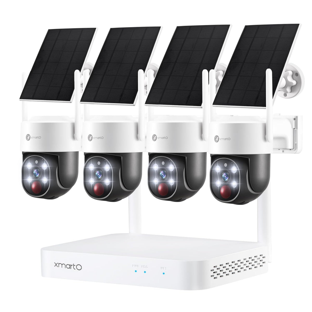 The Xmarto Wire-Free Security Camera System Comes With A 10 Channel Wifi Nvr And 4 Solar-Powered Pan, Tilt, Zoom Cameras.