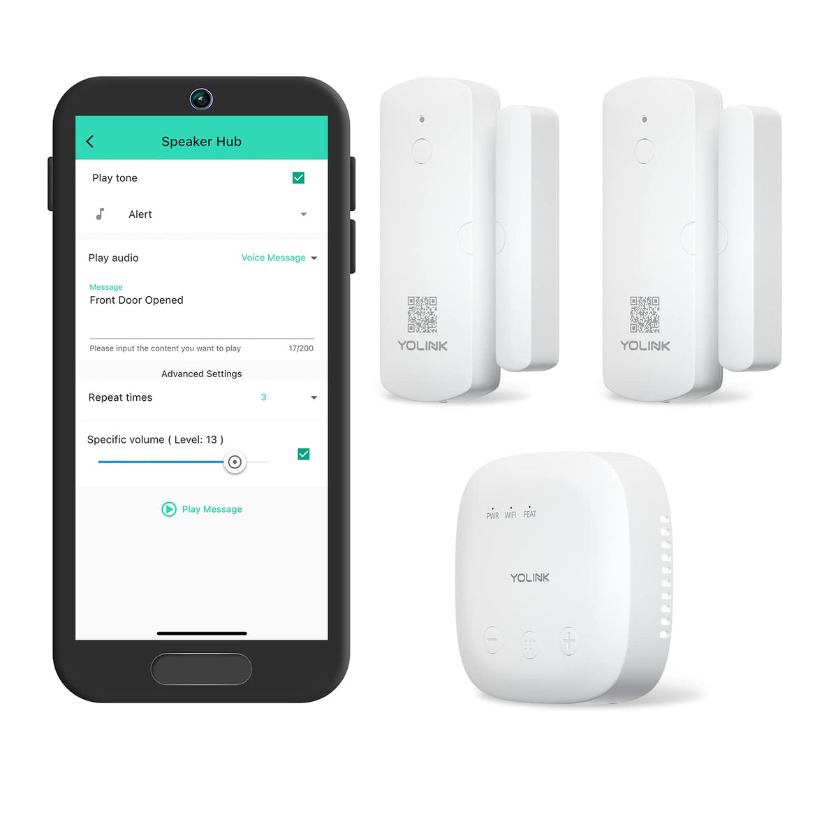 Yolink Lora Smart Door Sensor Starter Kit: Speakerhub Audio Hub & 2 Door Sensors Up To 1/4 Mile Range, Door Left Open Reminder