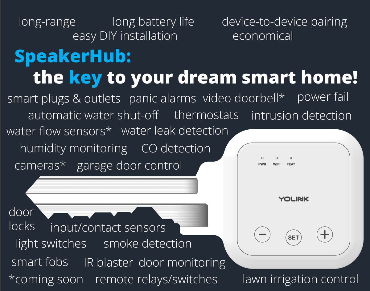 Yolink Speakerhub Smart Home Speaker Hub, Plays Tones/Alarms And Your Text To Speech Custom Messages, Voice Announcements, Audio Voice Alert, Spoken Alerts, Lora Powered � Mile Range, Wifi Required