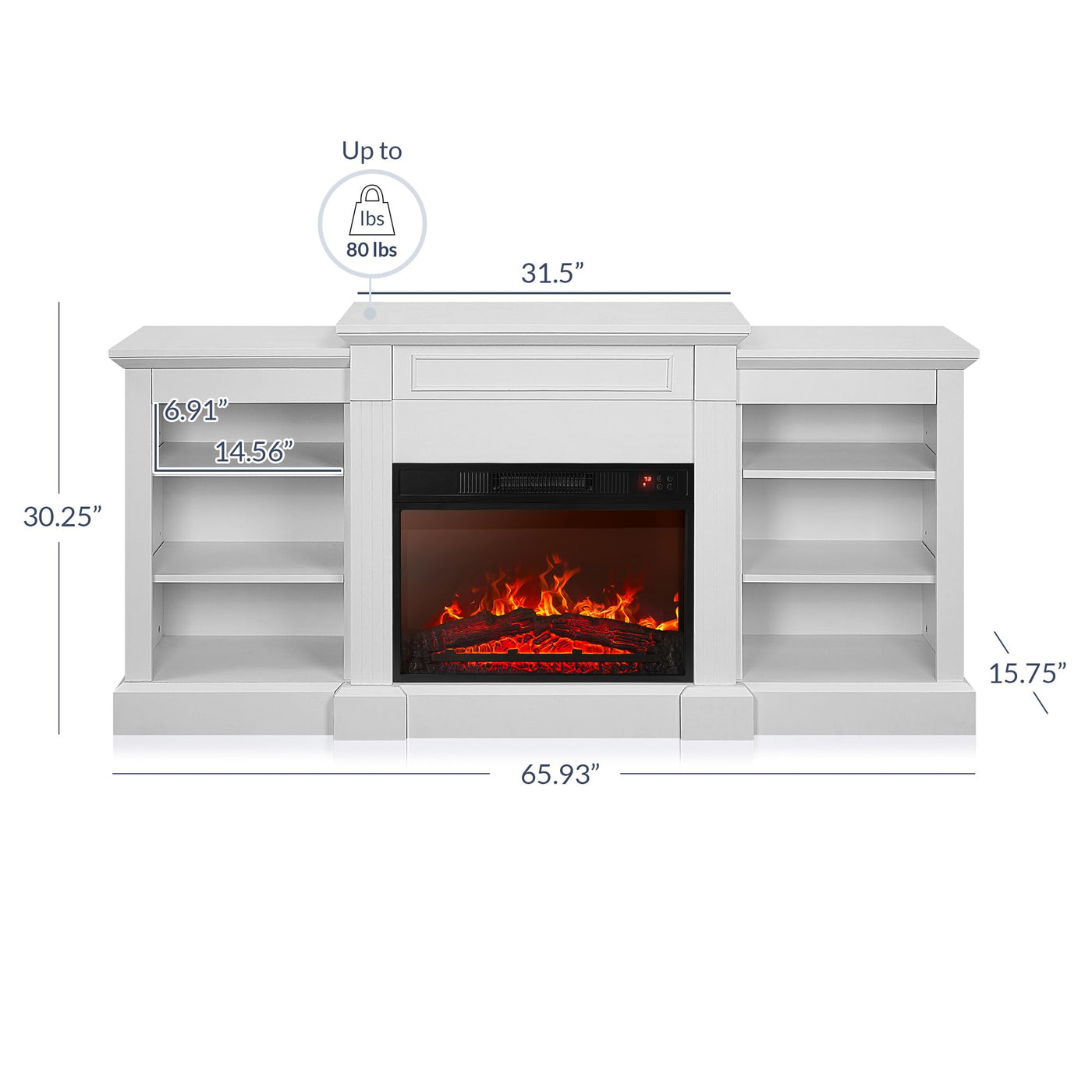 [Modern Design] Features A Mantel That Mimics The Look And Feel Of A Real Fireplace For A Cozy Space. Modern Design, Clean Lines And Crown Molding Add More Character And Detailing. | [Ample Storage] On Either Side Of The Electric Fireplace Are Three Open Shelves That Offer Storage Space For Books Or Electronics. A Great Way To Exhibit Your Favorite Decor Pieces. | [Electric Heater] Produces And Dissipates Heat Quickly And Efficiently To Warm Up Areas Up To 400 Square Feet. Comes With A Remote Control That Allows You To Customize Heat Settings And Sound. | [Safe & Energy Efficient] Self-Regulating Electric Heater That Shuts Off Before Overheating. An Energy Efficient Device Unit That Can Be Used With Or Without Heat. | [Love-It Or 100 Day Returns] We Guarantee That Youll Love This Product. If Not, Simply Return Within 100 Days Of Purchase.