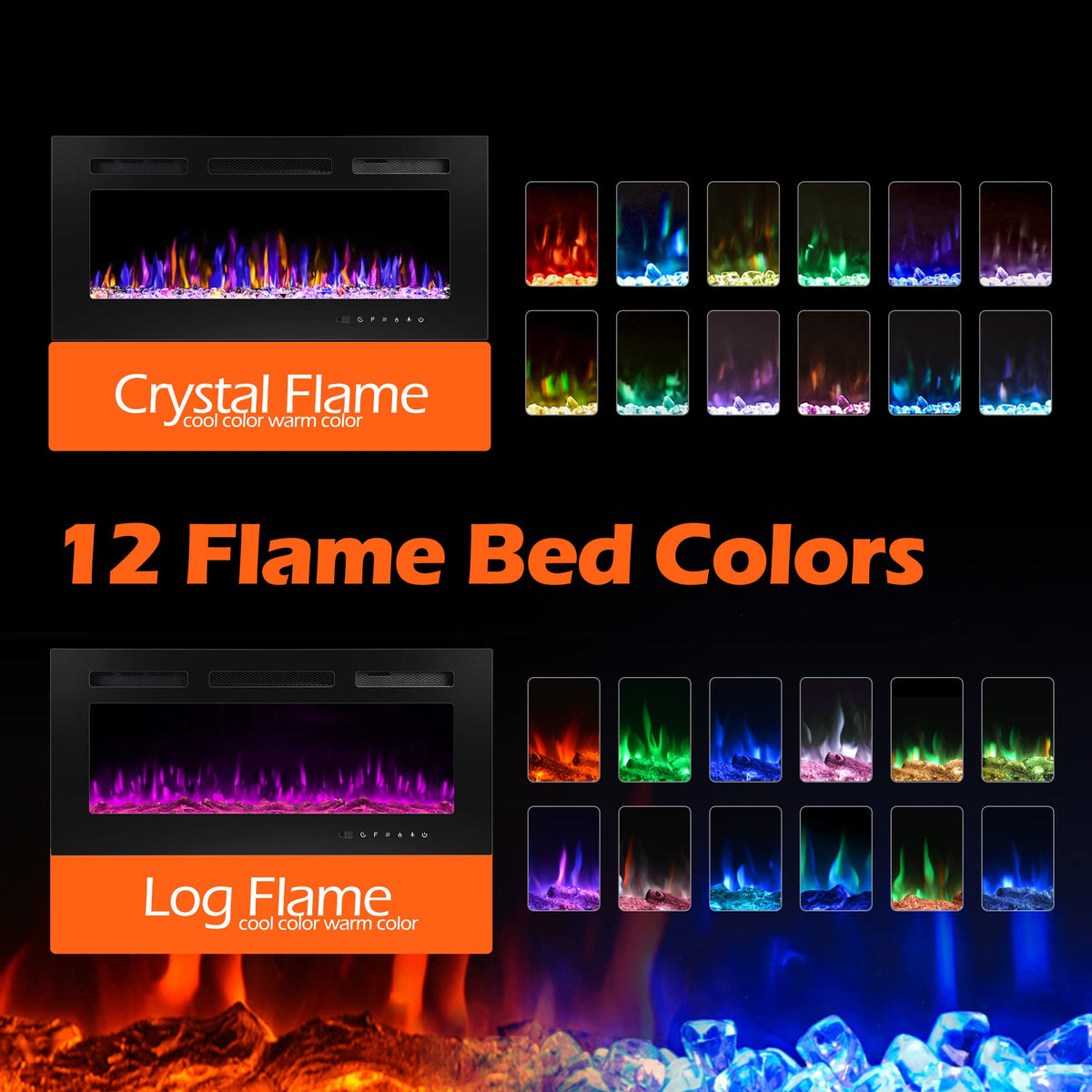 Betelnut 36'' Electric Fireplace Wall Mounted And Recessed With Remote Control, 750/1500W Ultra Thin Wall Fireplace Heater W/ Ti