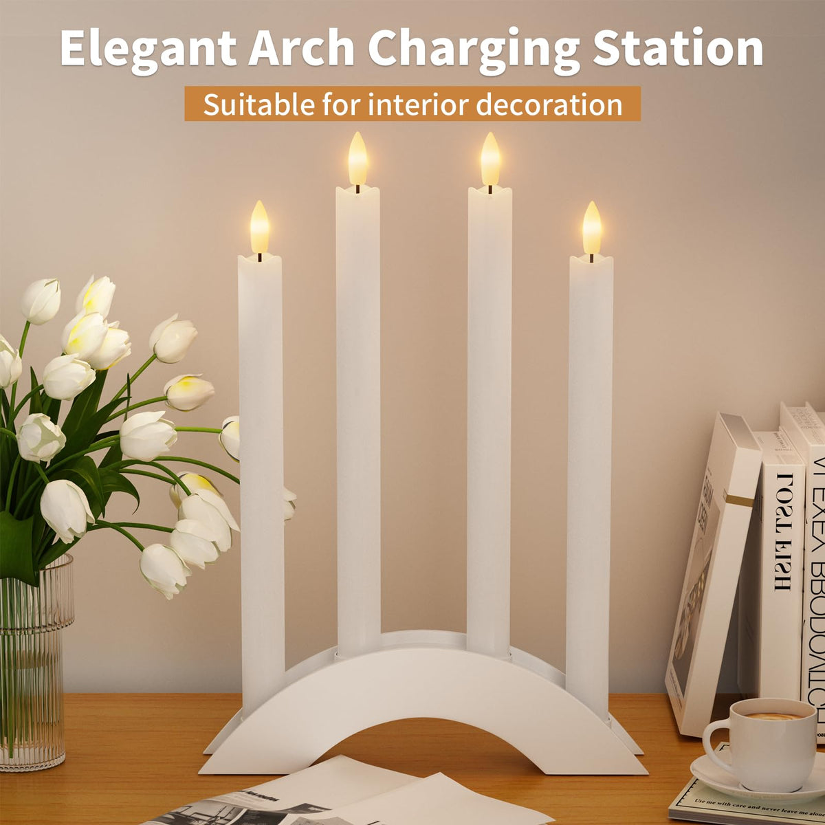 Buthy Rechargeable Flameless Taper Candles With Charging Station & Remote Timer 4Pcs Led Candlesticks Battery Operated Flickerin
