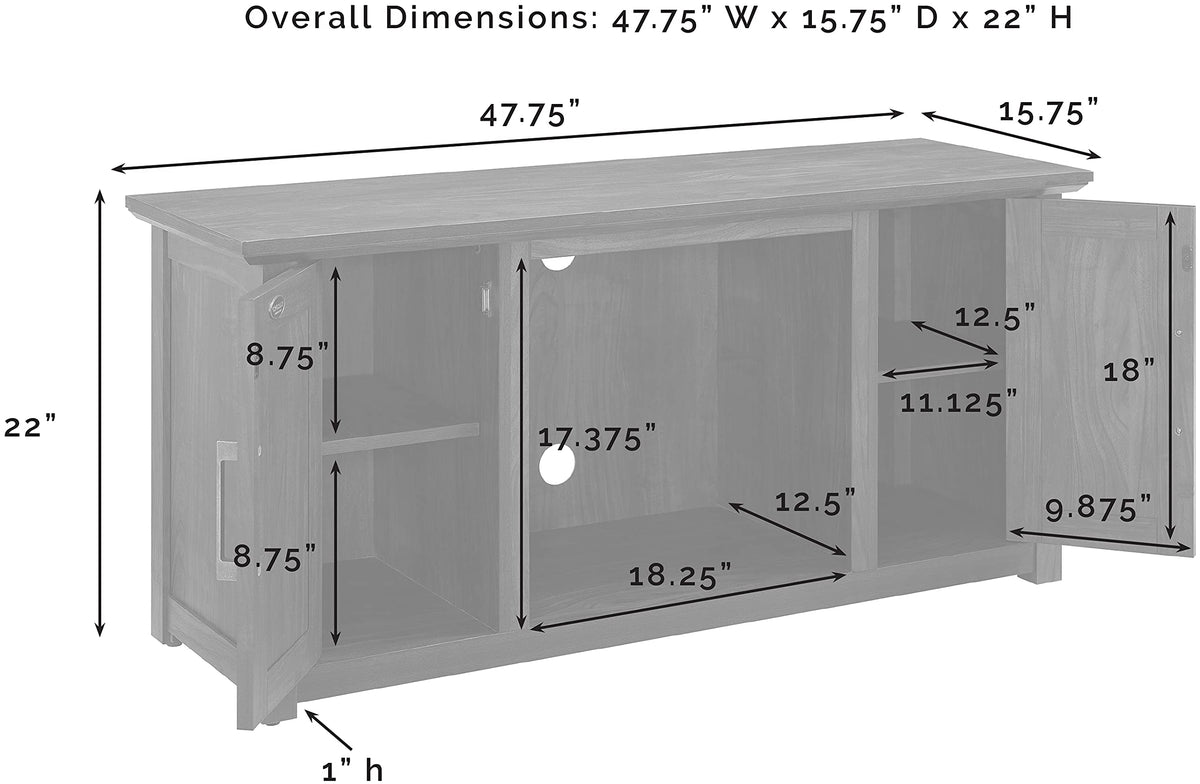 Ideal For Smaller Living Spaces, The Crosley Furniture Camden 48 Corner Tv Stand With Fireplace Creates A Cozy Space For Home Entertainment. This Tv Stand Tucks Neatly Into Any Corner While Showcasing Your Television And Keeping Media Necessities Hidden Away. Each Cabinet Features An Adjustable Shelf That Adapts To Your Storage Needs. With An Electric Firebox In The Center Compartment, This Tv Stand Doubles As A Modern-Day Hearth, Able To Heat Approximately 400 Square Feet Of Your Home. Sized To Fit Most Tvs Up To 50 Inches, The Camden 48 Corner Tv Stand With Fireplace Exudes Rustic Style With The Look Of Wood-Grain And Substantial Metal Hardware.