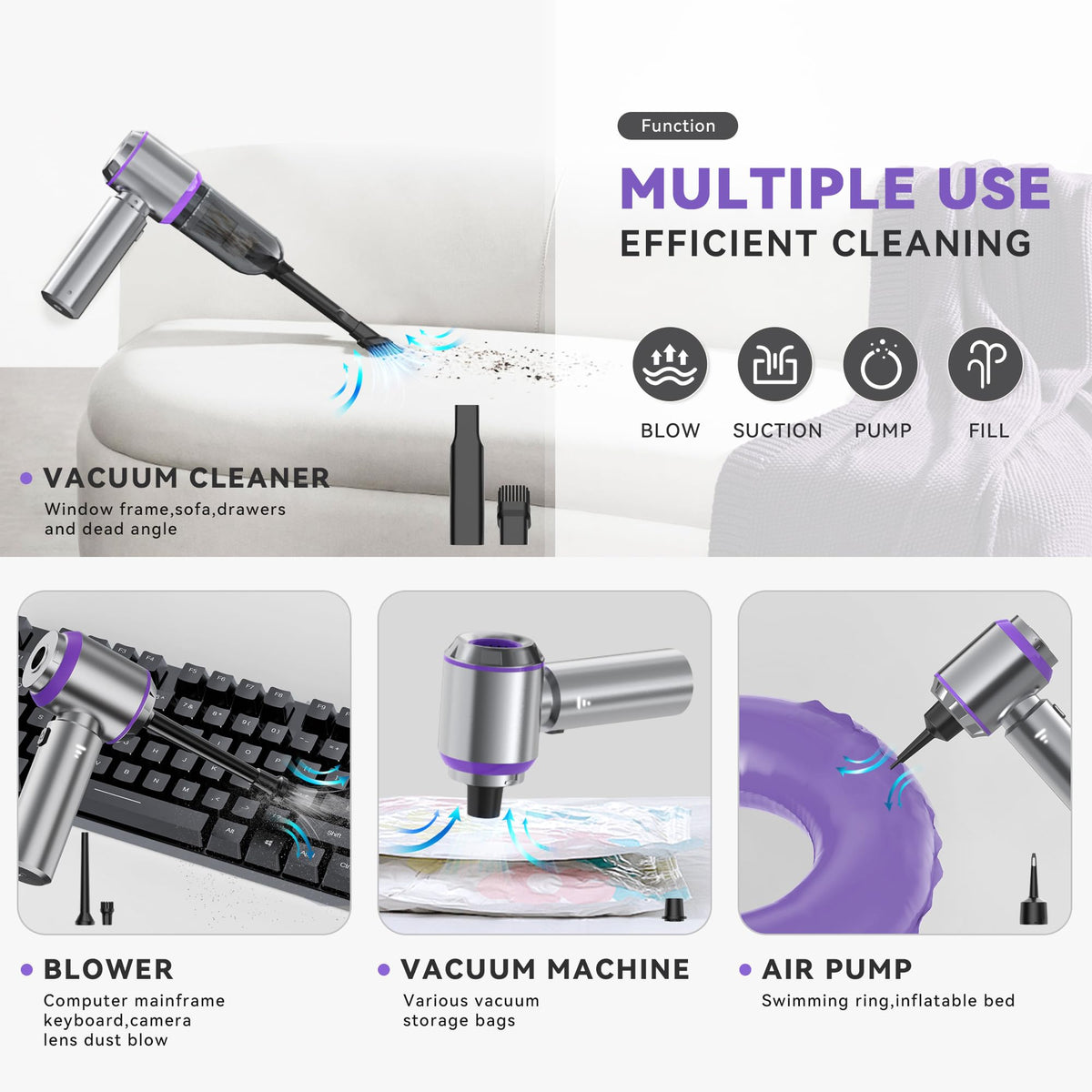 Car Vacuum Cleaner, Mini Handheld Vacuum Cordless 16000Pa 120W Powerful Brushless, Low Noise Rechargeable Mini Vacuum For Car, H