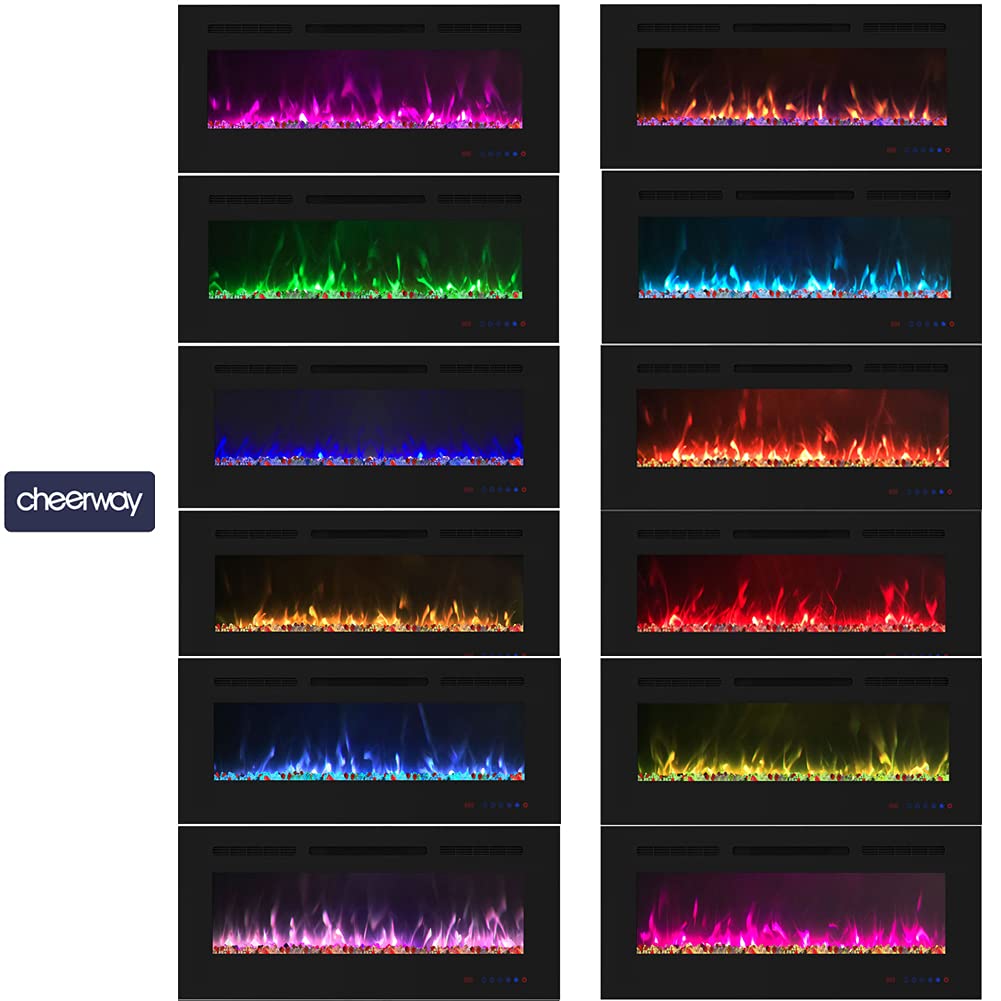 Cheerway 36 Inch Wall Mounted &Recessed In Wall Electric Fireplace With Heater, Linear Wall Fireplace W/ Thermostat, Adjustable Flame&Fuel Color, Remote & Touch Control W/ Timer, 750W/1500W Features In Wall Recessed & Wall Mounted Install Methods Changeable Look: 13 Flame Color Combined 13 Color Flame Bed Mode Heat Or No Heat Setting, Overheat Protection 2 Control Mode: Remote Control Or Touch Panel Control Timer: 1-9 Hours Specification Brand: Cheerway Material: Metal, Tempered Glass, Resin, Abs Coverage Area: 450 Square Feet Power Cord Length: 6 Feet Input Voltage: 110V-120V Frequency: 60Hzflame Effect: Life-Like Flame Effect, 13 Color Mode Overall Dimensions: 36W X 17.72 H X 5.91 D Order Now And Consider Buying One Set For Your Sweet Home. Let Cheerway Electric Fireplace Warm Your Home And Life.