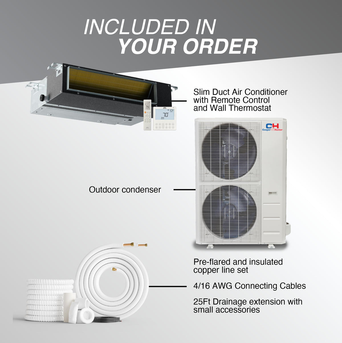 Cooper & Hunter 48,000 Btu 230V Concealed Slim Ducted Mini Split Air Conditioner & Heat Pump - 17.1 Seer2 Inverter System - Incl