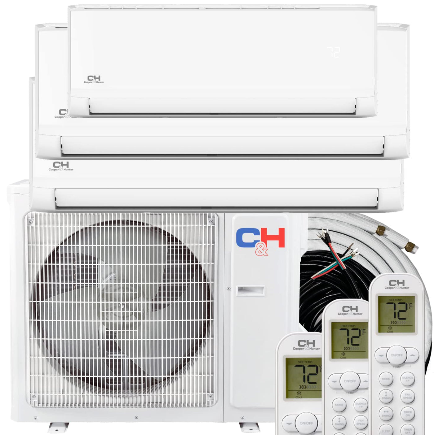 Cooper Hunter Tri 3 Zone 9000 9000 12000 Ductless Mini Split Air Conditioner Heat Pump Heater Full Set With 25Ft Installation K