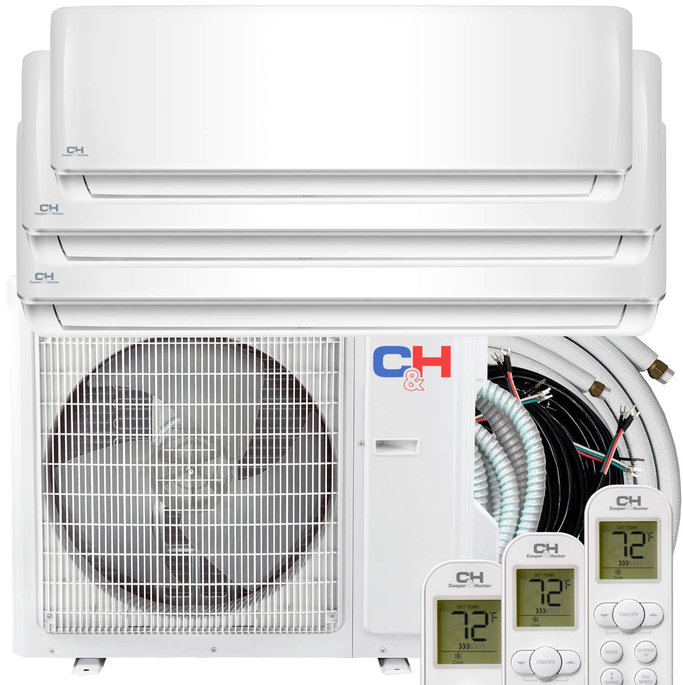 Cooper Hunter Tri 3 Zone 9000 9000 9000 Btu Multi Zone Ductless Mini Split Air Conditioner Heat Pump Full Set With 25Ft Install