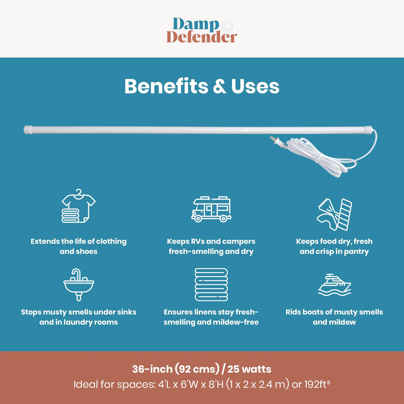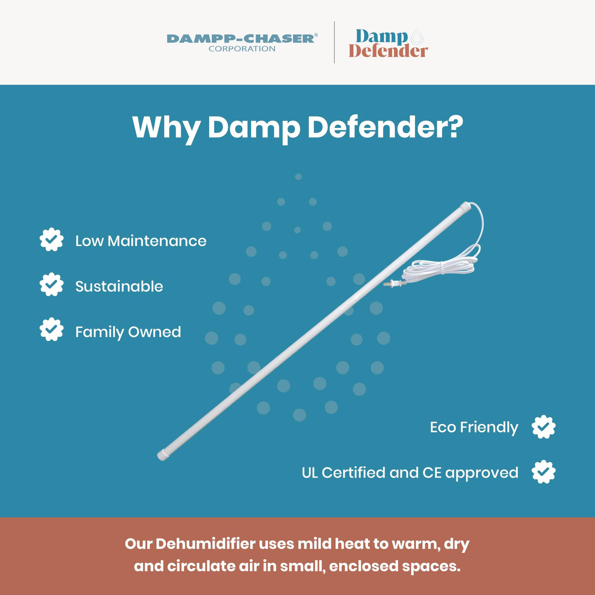 Damp Defender By Dampp Chaser (36 Inches, White) Compact Dehumidifier For Humidity Control In Closets, Bathrooms, Kitchens, Rv