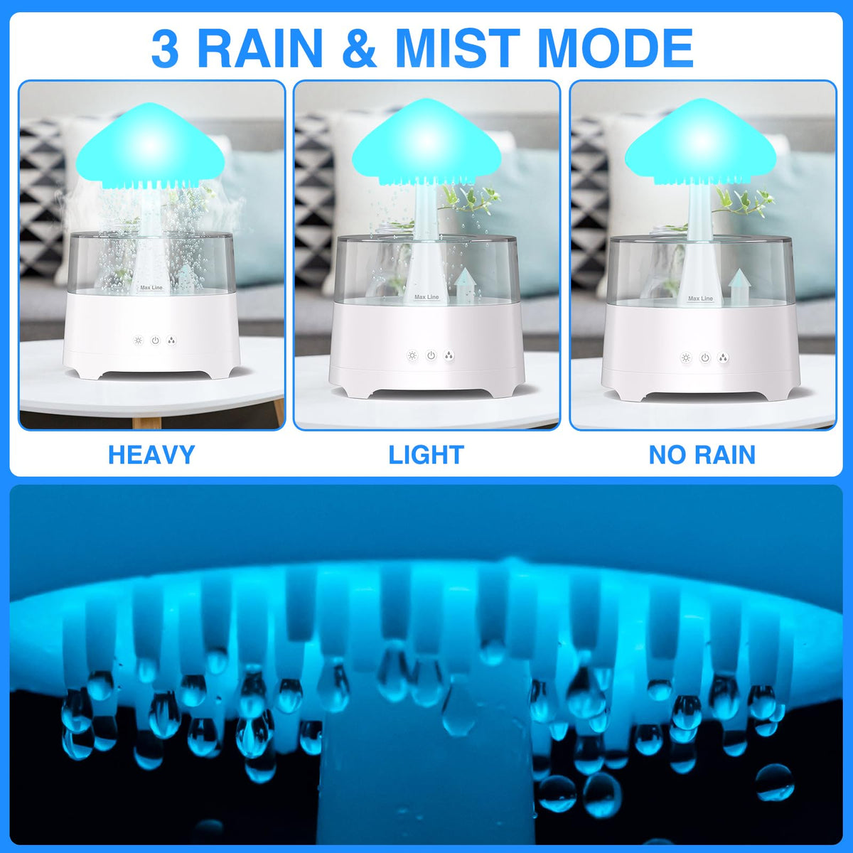 Diffuserlove Cloud Humidifier Rain Water Drip Diffuser Humidifier 450Ml With Remote Mushroom Lamp Humidifier Rain Sounds Humidif