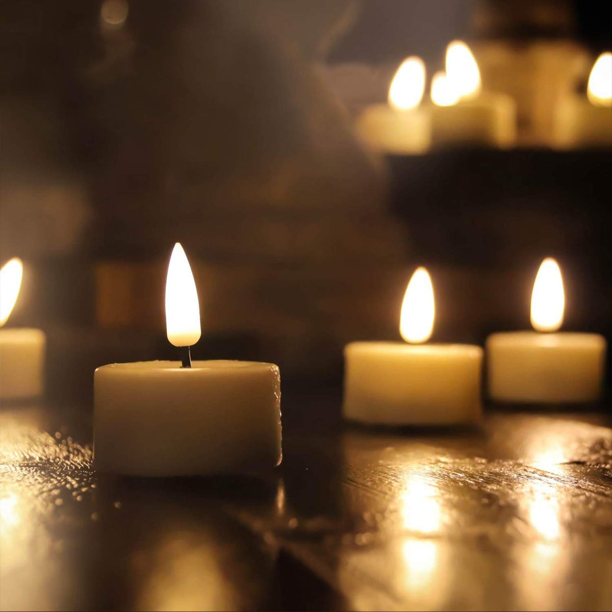 Q: Are these flameless candles safe to use around children and pets?A: Absolutely! The Eywamage Flameless Tealights are battery-operated and pose no fire risk, making them a safe alternative to traditional candles. There’s no open flame, wax drips, or smoke, so you can use them worry-free around kids and pets.