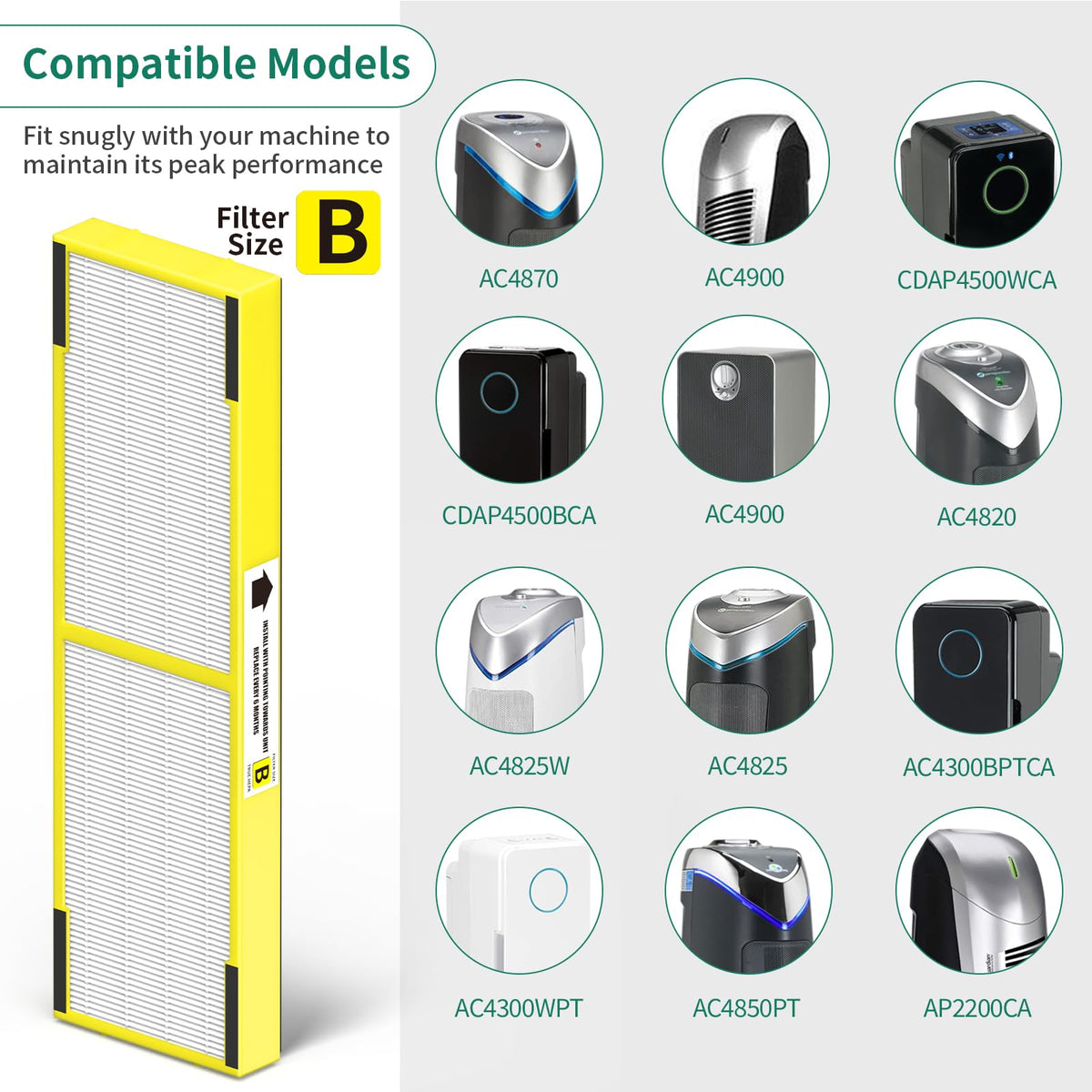 Fcfmy 4 Packs Flt4825 Replacement Filters B Compatible With Ac4825 Ac4300 Ac4800 Ac4900 Ac4850 Air Cleaner Purifier, 4 H13 True