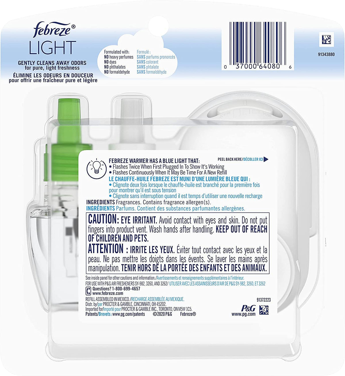 Q: Can I use the Febreze Light Plug with other Febreze refills?A: The Febreze Light Plug is specifically designed for use with Febreze LIGHT scented oil refills, so it is recommended to use compatible refills for optimal performance.