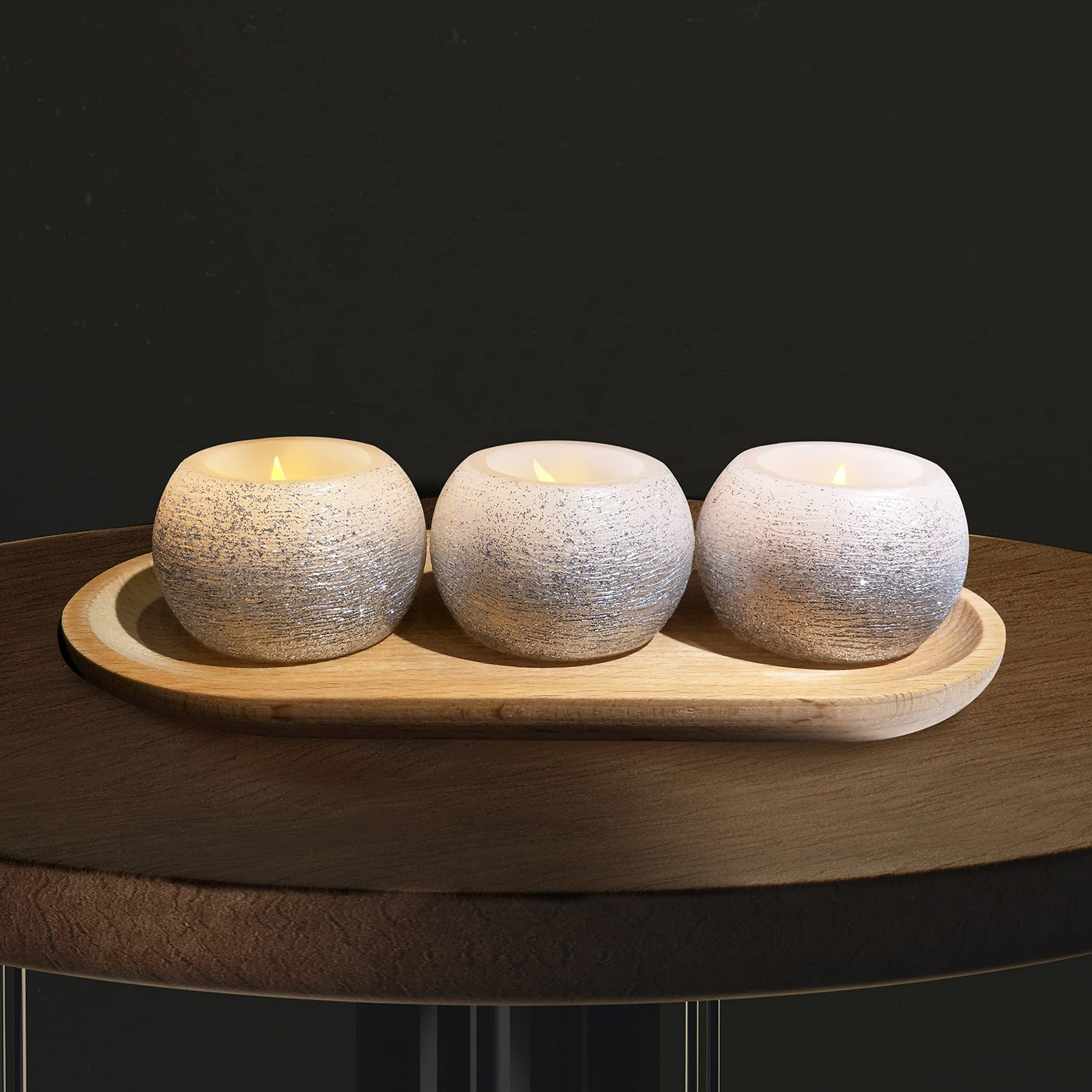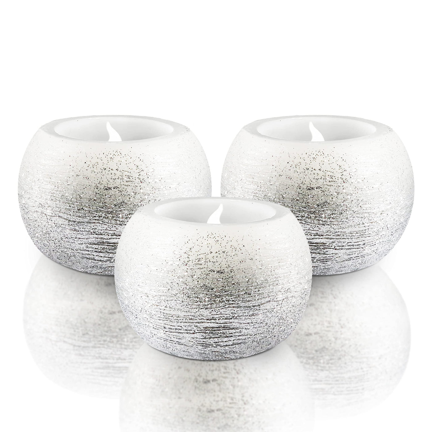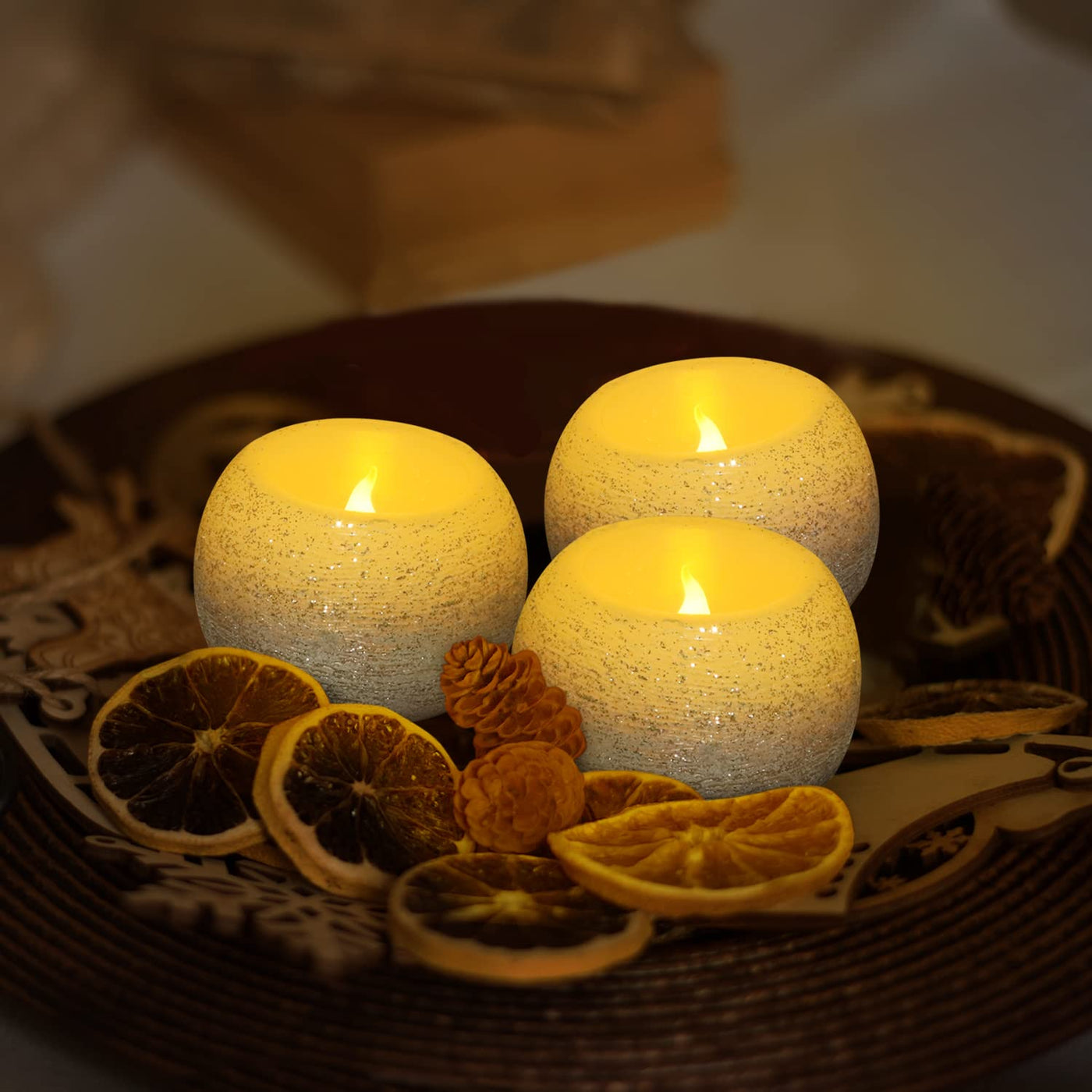 Furora Lighting Silver Glittery Real Wax Flameless Candles Pack Of 3, Led Flickering Round Candles Perfect For Wedding D Cor, 2