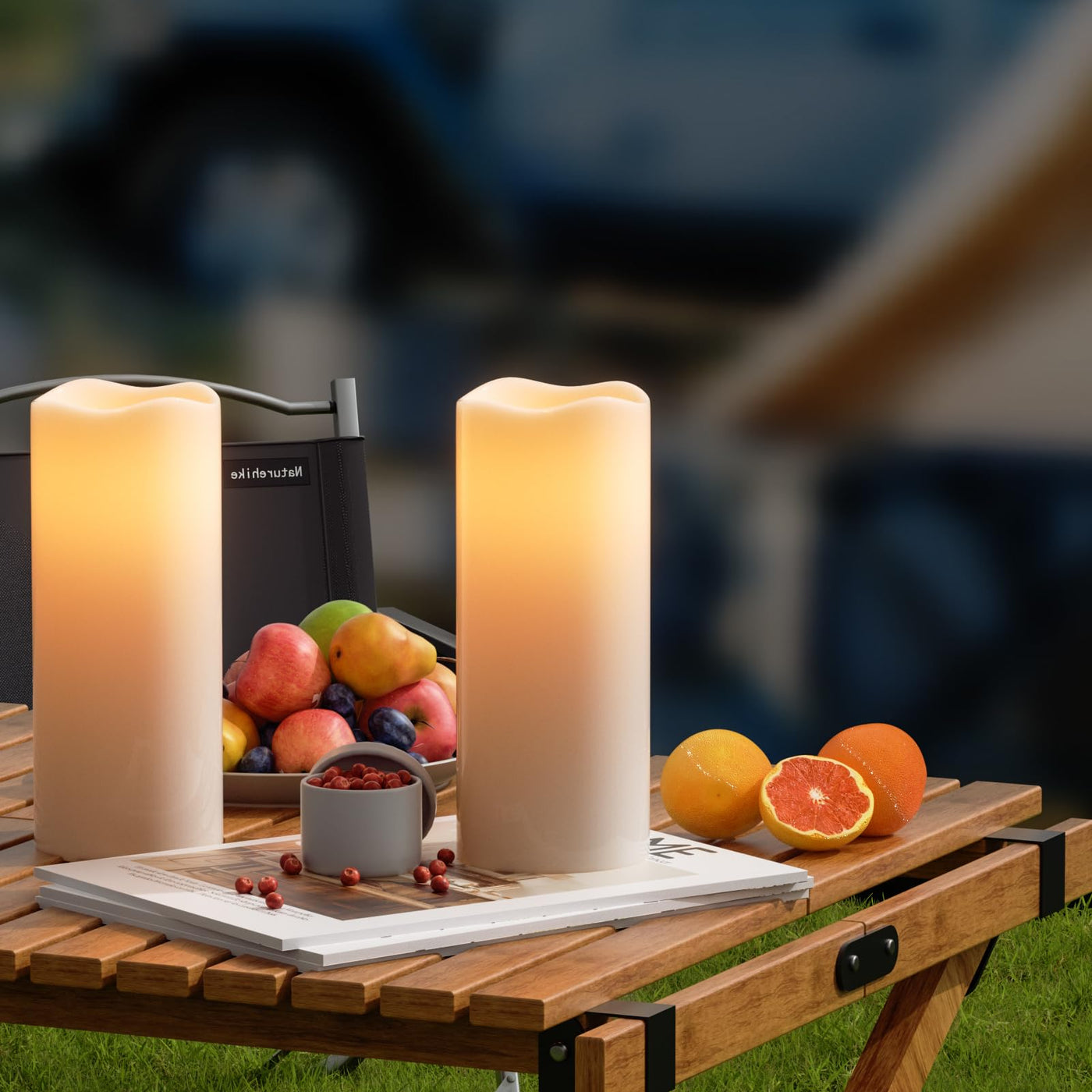 Q: Are the GenSwin flameless candles suitable for outdoor use?A: Yes, the GenSwin 8” x 4” Waterproof Outdoor Flameless Candles are specifically designed for outdoor use. They are made of weatherproof plastic, ensuring they won't melt in the sun or get damaged by rain.