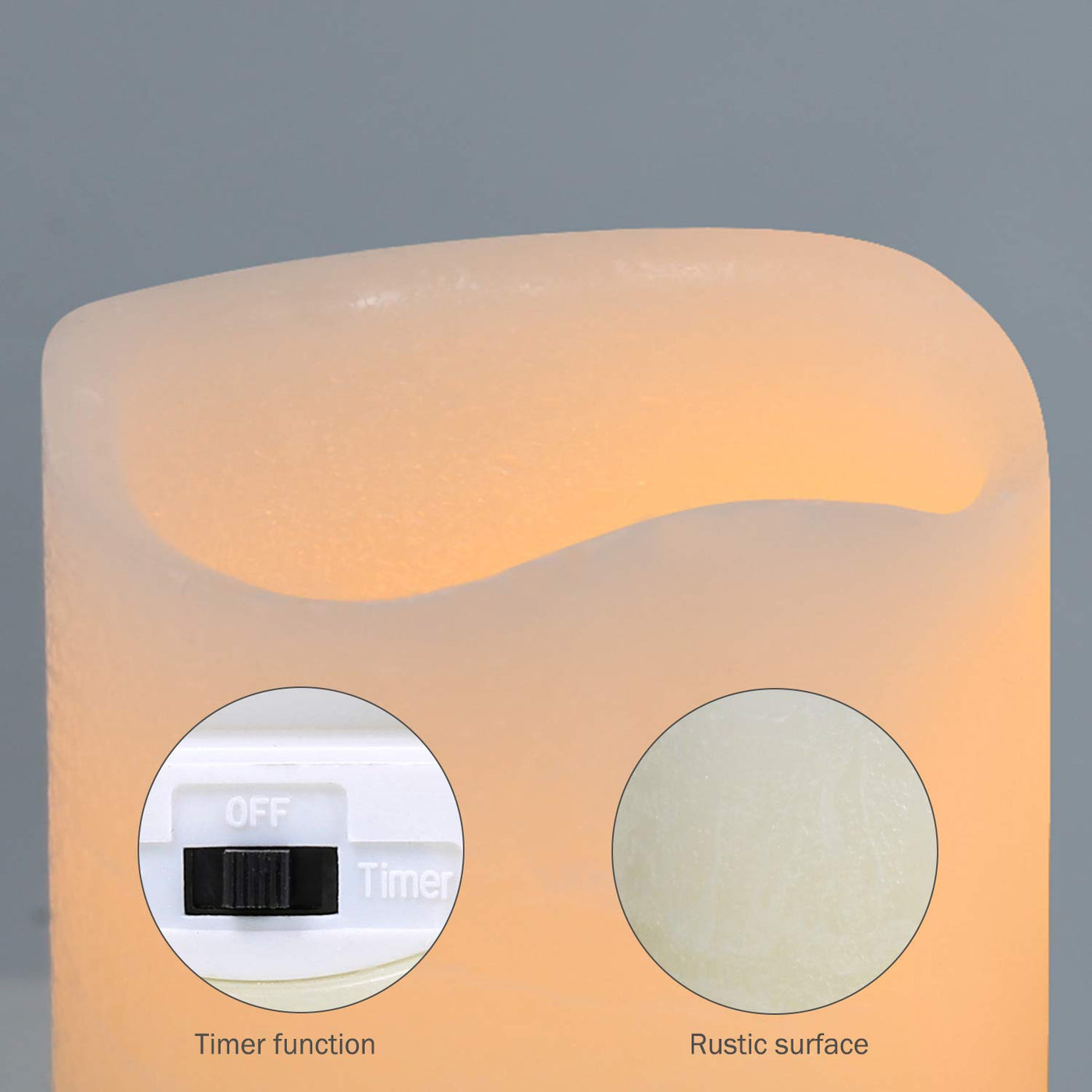 H-Blossom Flickering Flameless Candles Battery Operated Real Wax Pillar Candles Led Candles With Cycling 5H Timer Pack Of 6 (3 X