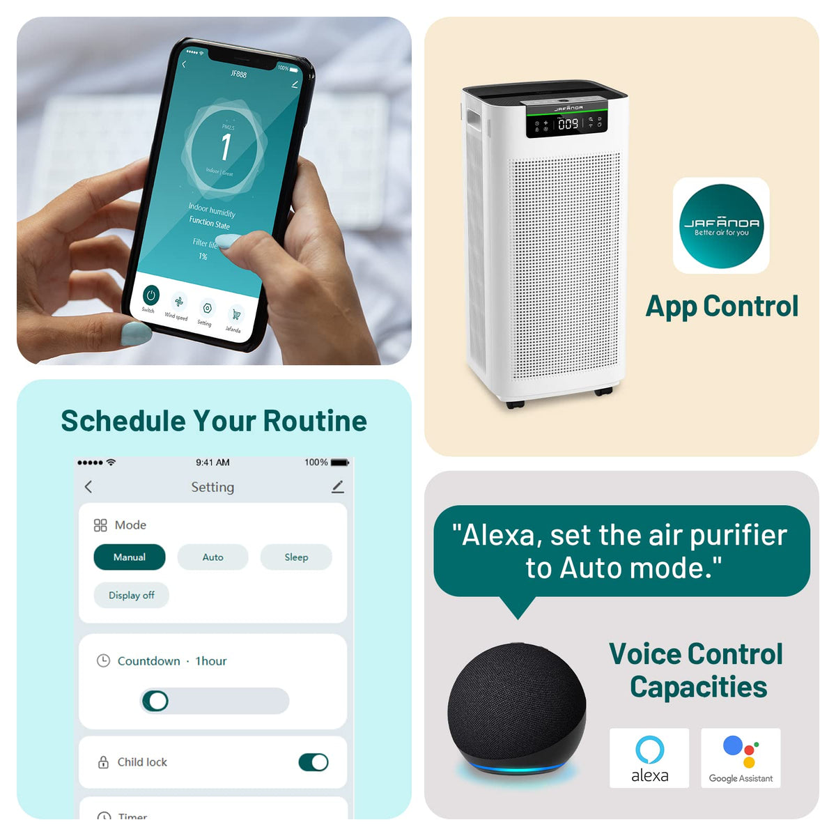 Jafnda Air Purifiers Home Large Room 3800 Sq Ft H13 True Hepa Filters Activated Carbon App & Alexa Air Cleaner Dust Pollen Smoke
