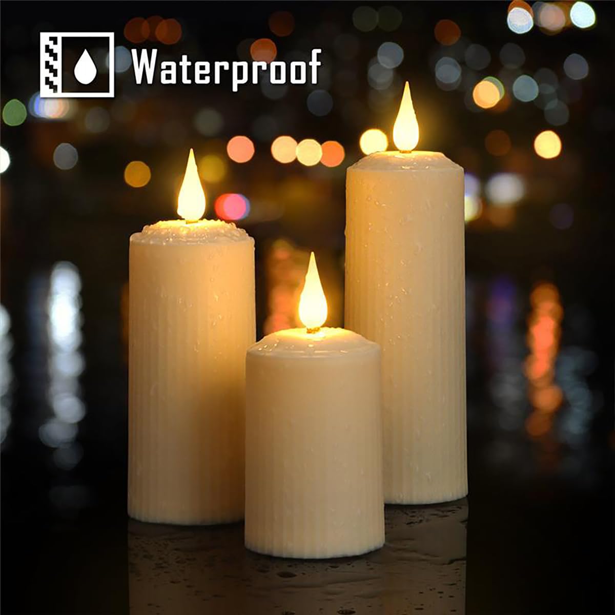 Ledholyt Led Flameless Candle, Outdoor Flickering Pillar Candle,Rechargeable Ip44 Waterproof Electronic Candle With Remote Contr