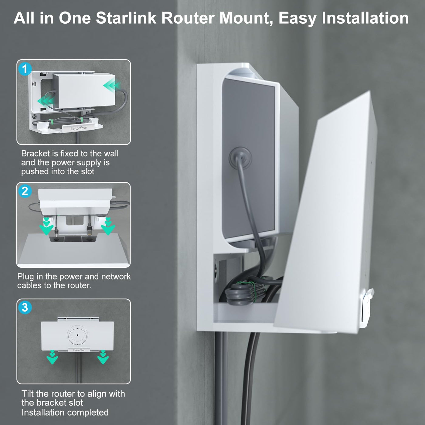 Linkoostar Starlink Gen 3 Mount, All In One Starlink Router Mount For Starlink V3 Wall Mount/Desk Mount For Starlink Standard V3