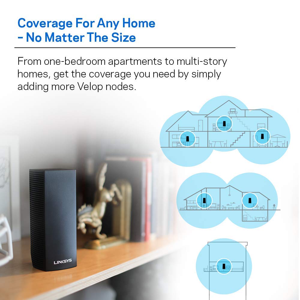 Linksys Velop Is The Is The Tri Band Wi Fi System That Works In Perfect Harmony To Create A High Range Mesh Network. Now In Black, Velop Blends In Perfectly With Your Homes Style Or Accessories. Unlike Traditional Routers With Range Extenders, Velops Tri Band Wi Fi System Offers Connection Points That Provide 100 Percent Internet Speed Throughout Your Home. By Utilizing Wireless Mesh Networking For Whole Home Wi Fi, Velop Delivers The Freedom Of Reliable, Secure, Seamless Connectivity Throughout Your Home And Even Outside. Each Node Increases Wi Fi Range 2,000 Sq. Ft. With This 2 Pack Delivering Wi Fi Up To 4,000 Square Feet? And You Can Continue To Add More Nodes To Grow Your Mesh Network. It Features Simple App Based Setup Using The Linksys App, Which Also Keeps You Informed Of Your Network Status And Solves Any Wi Fi Interruptions. Additional Information: Bluetooth 4.0/Le For Secure And Easy App Based Set Up.
