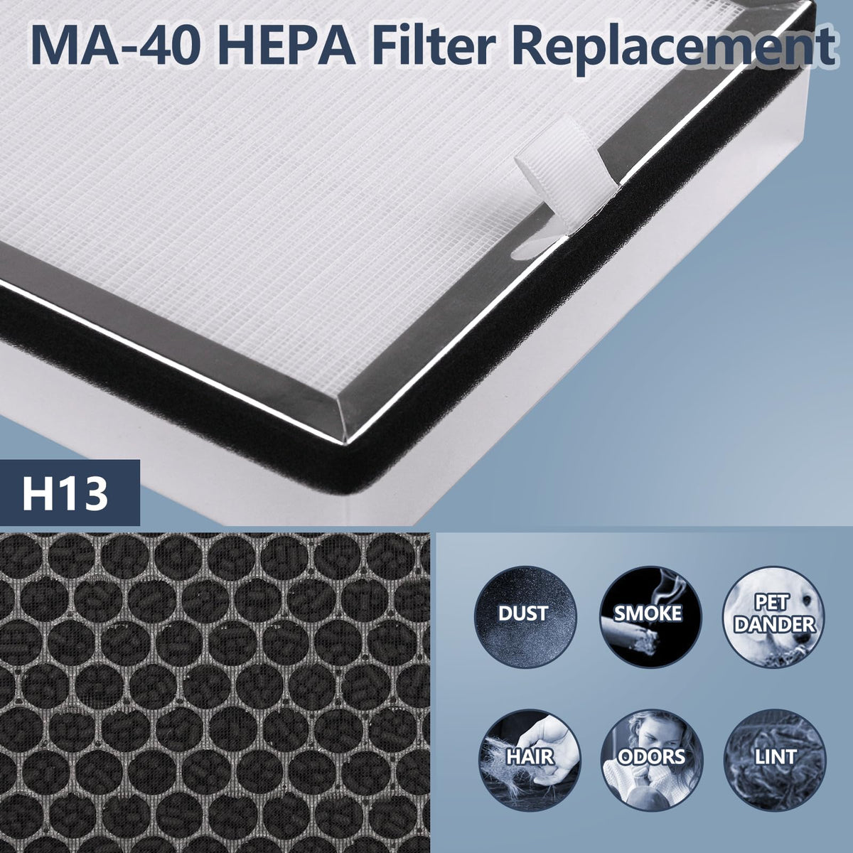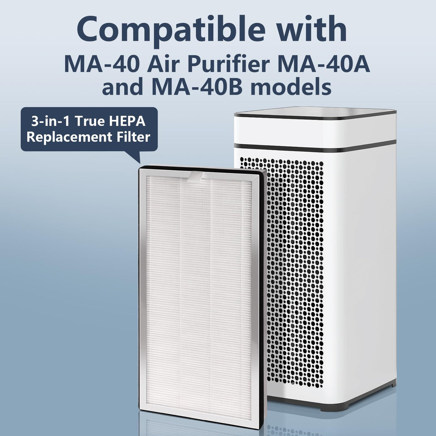 Midiex Air Ma-40 Replacement Filter Compatible With Medify Ma-40 Air Purifier, 3-In-1 High-Efficiency Hepa And Activated Carbon