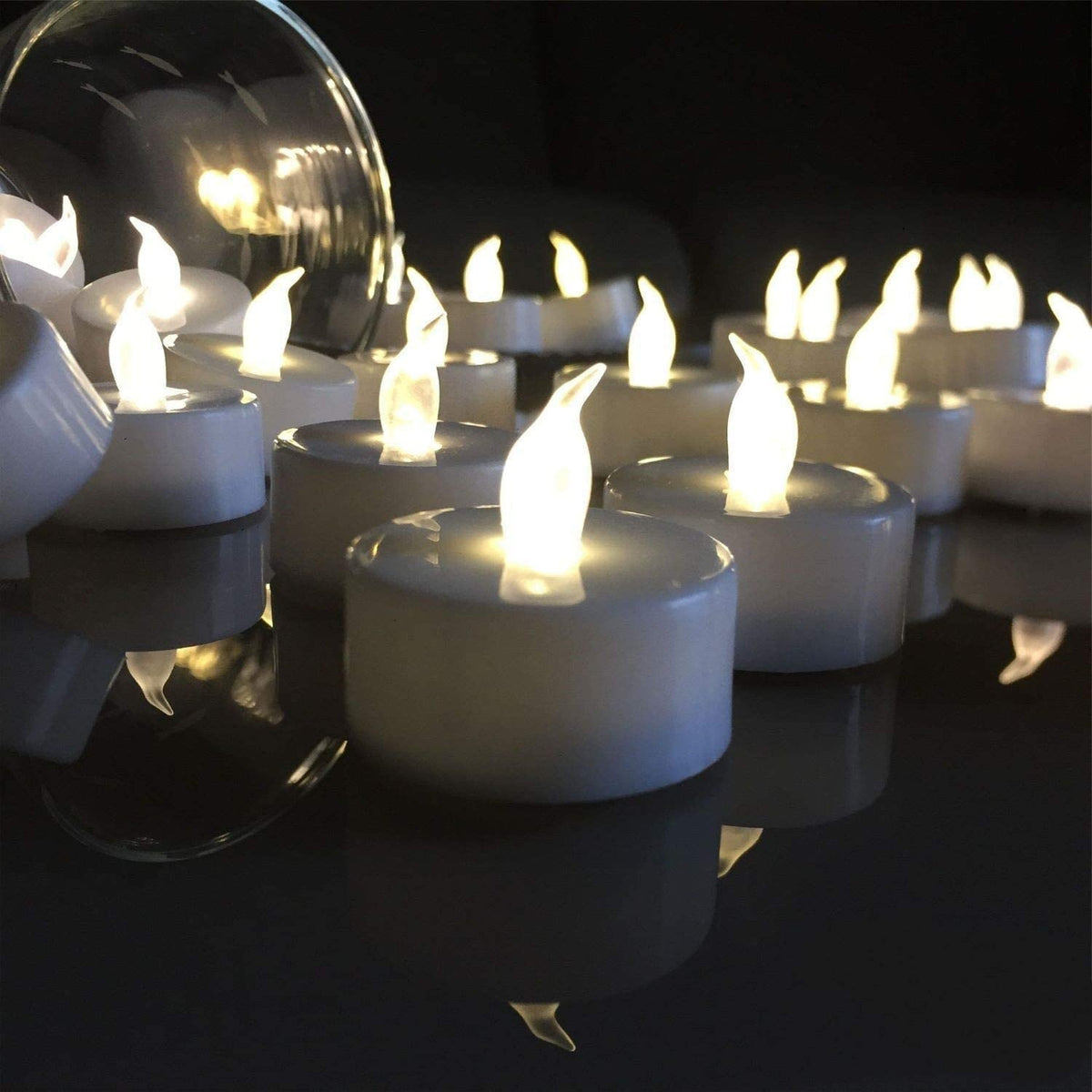 Q: What occasions are these LED tea lights suitable for?A: These flameless LED tea lights are versatile and suitable for various occasions, including weddings, Halloween, Thanksgiving, holiday parties, and home decoration, adding a warm ambiance to any setting.