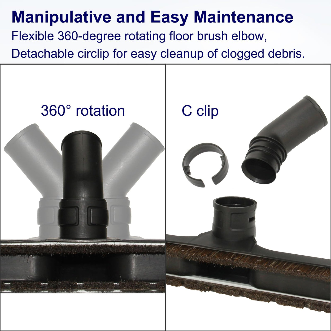 Portek Hardfloor Brush Is Designed For Universal Vacuum Cleaners With 1 1/4 Or 1 3/8 Diameter System, As Vacuum Attachment Replacement For Various Brands And Types Vacuum Cleaners, To Clean Different Hard Floor Surfaces And Low Pile Carpets.