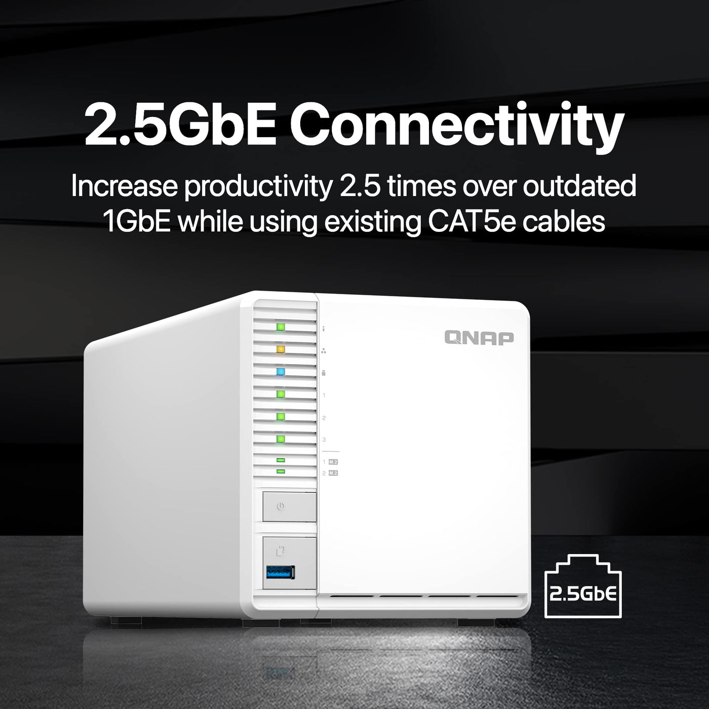 Qnap Ts 364 8G Us 3 Bay High Performance Desktop Nas With 2.5Gbe And M.2 Ssd Caching For Running Virtual Machines And Qtier