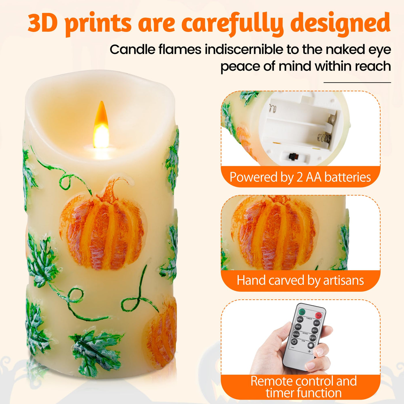 Qqfctoo Halloween Pumpkin Flameless Led Candle - Realistic Flickering Flame - Battery Making Candle With Remote Control Timer -