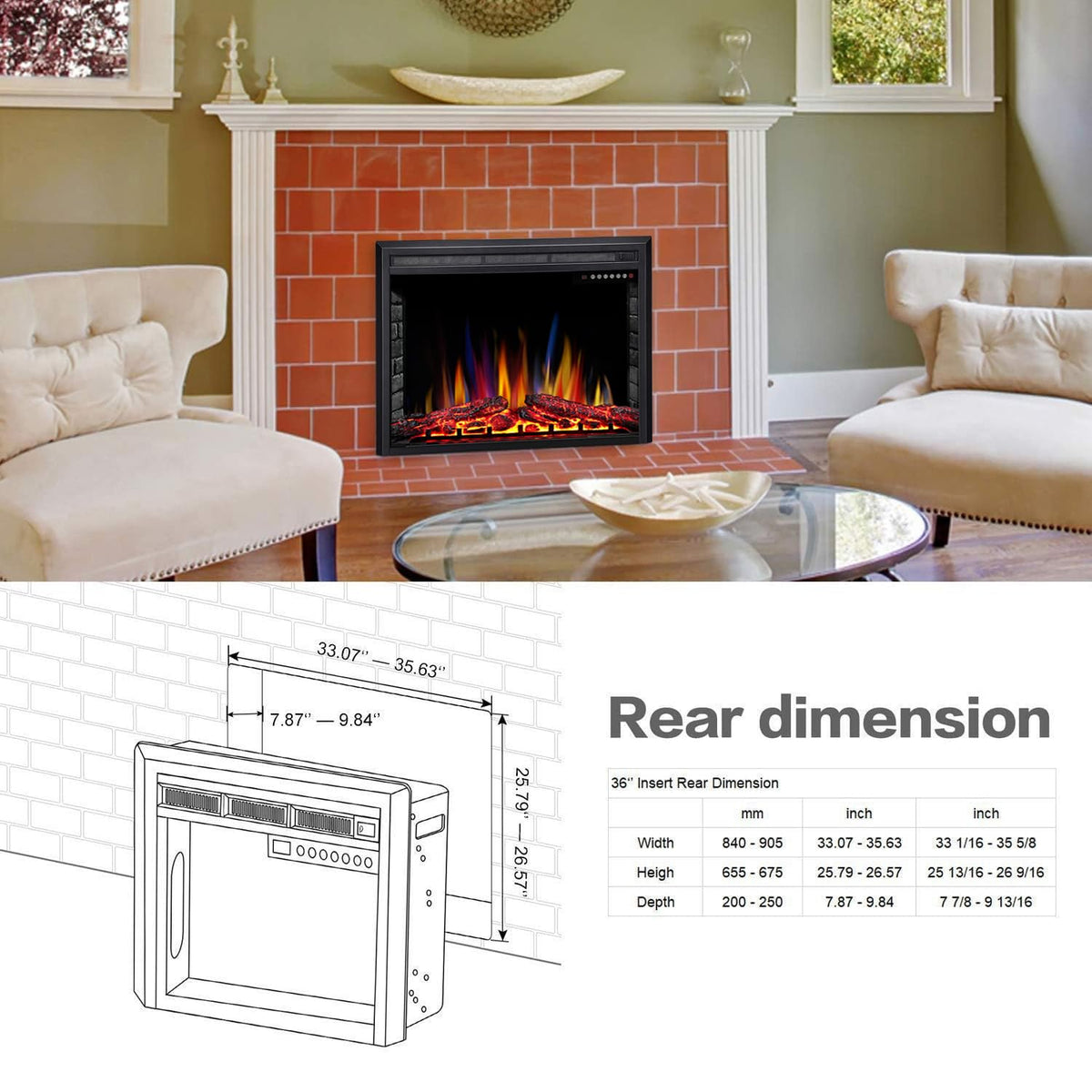R.W.Flame A-36 Electric Fireplace Insert ,Recessed Electric Stove Heater,Touch Screen,Remote Control,750W-1500W With Timer & Col