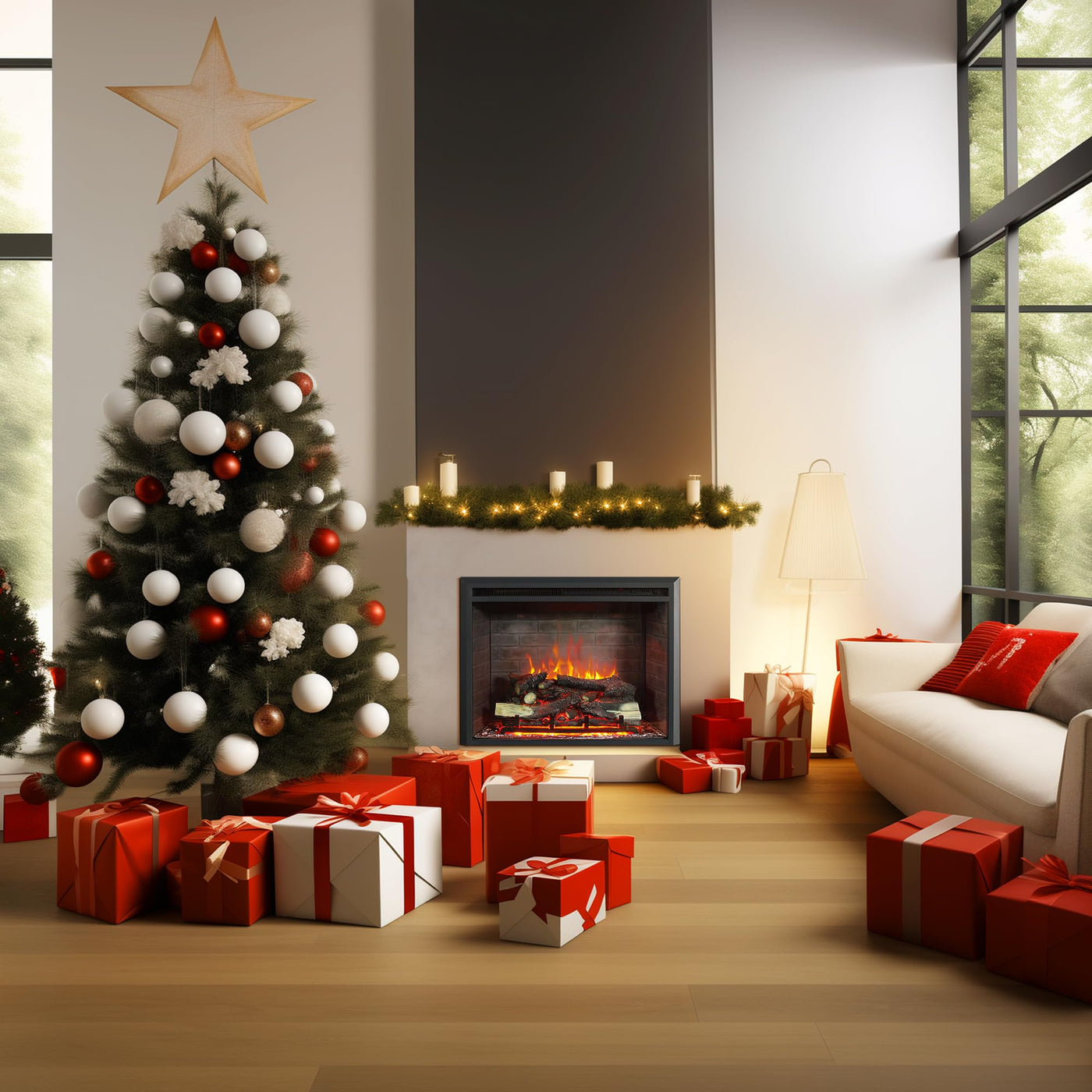 Richflame Gavin 33 Inches Electric Fireplace Insert With Log Speaker, Designed For Stud, Wood Burning Opening, Cabinet & Wood Ma