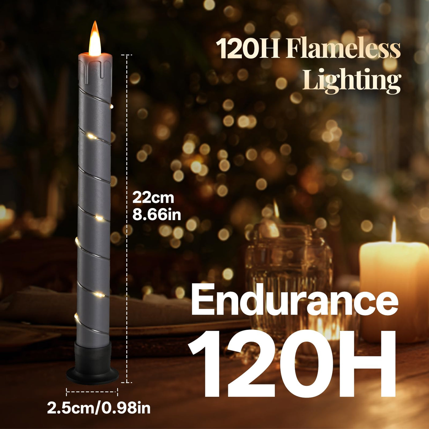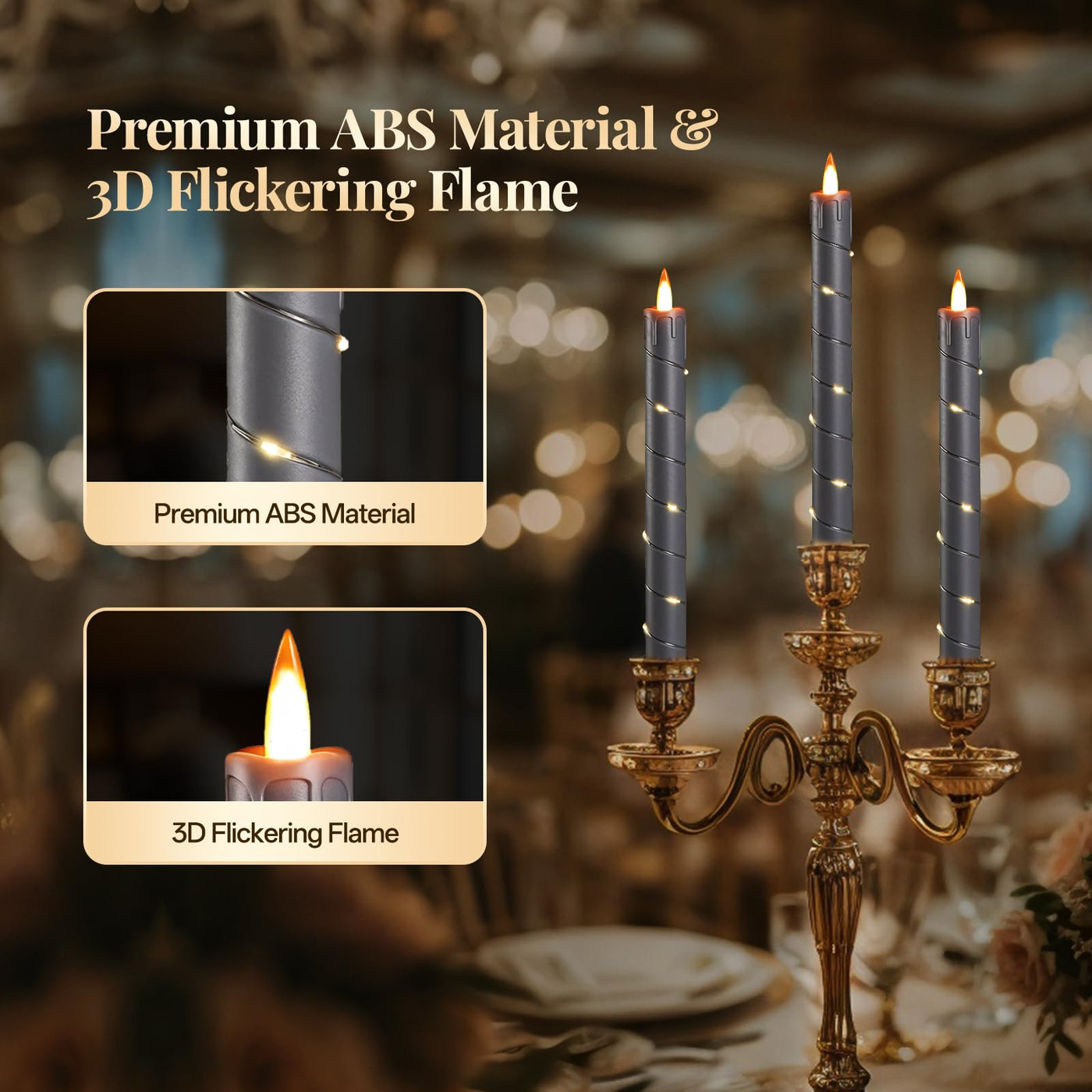 Rlojru 3Pcs Flameless Taper Candles Grey Black Battery Operated, With Embedded Fairy String Lights, Led Flickering Flame Candle,
