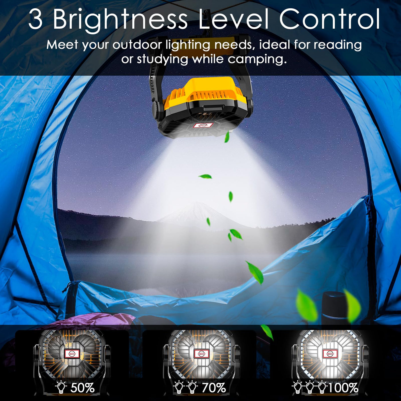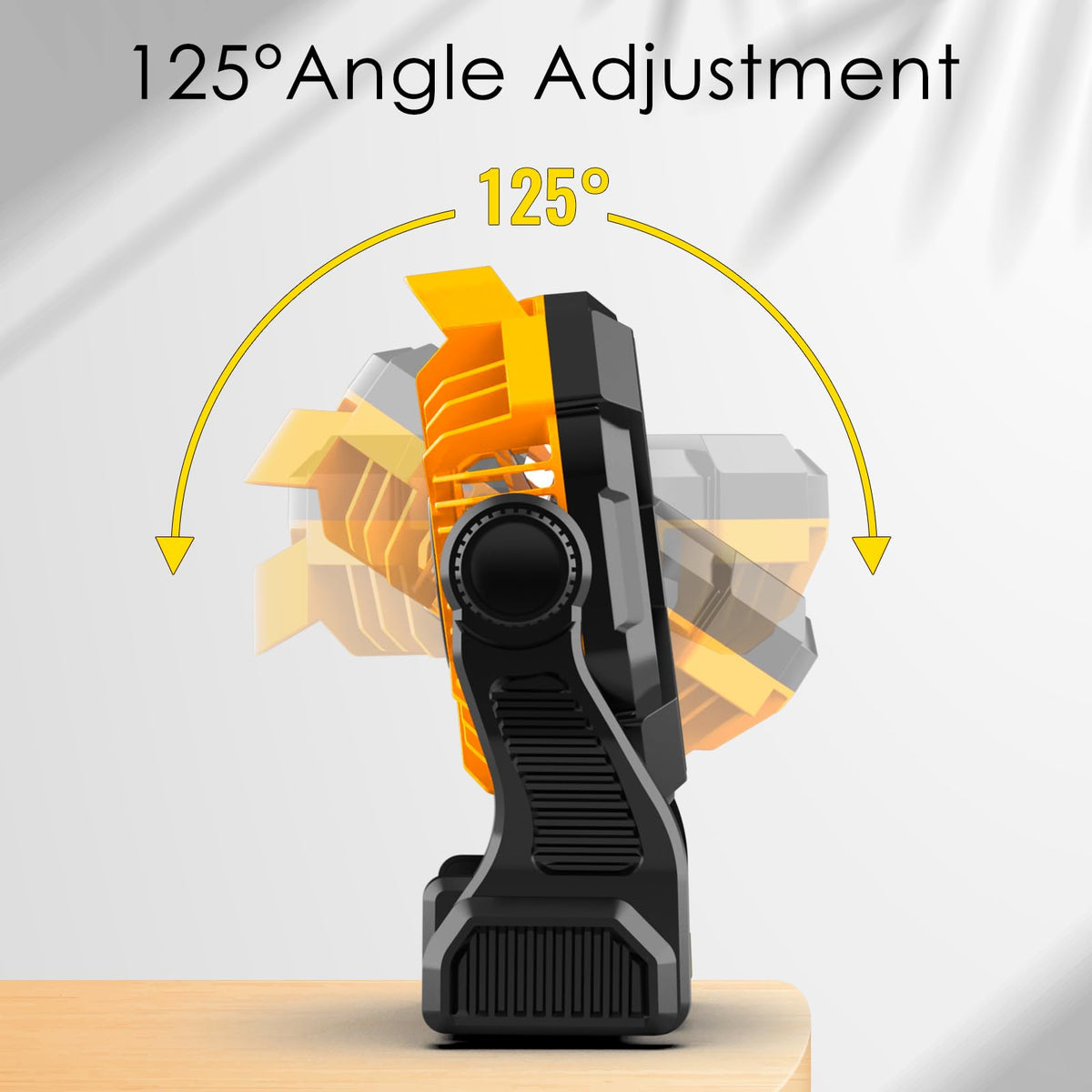 Sendowtek Portable Battery Fan With Led Light, 10400Mah Quiet Rechargeable Tent Fan With Hanging Hook 4 Speed Small Usb Battery