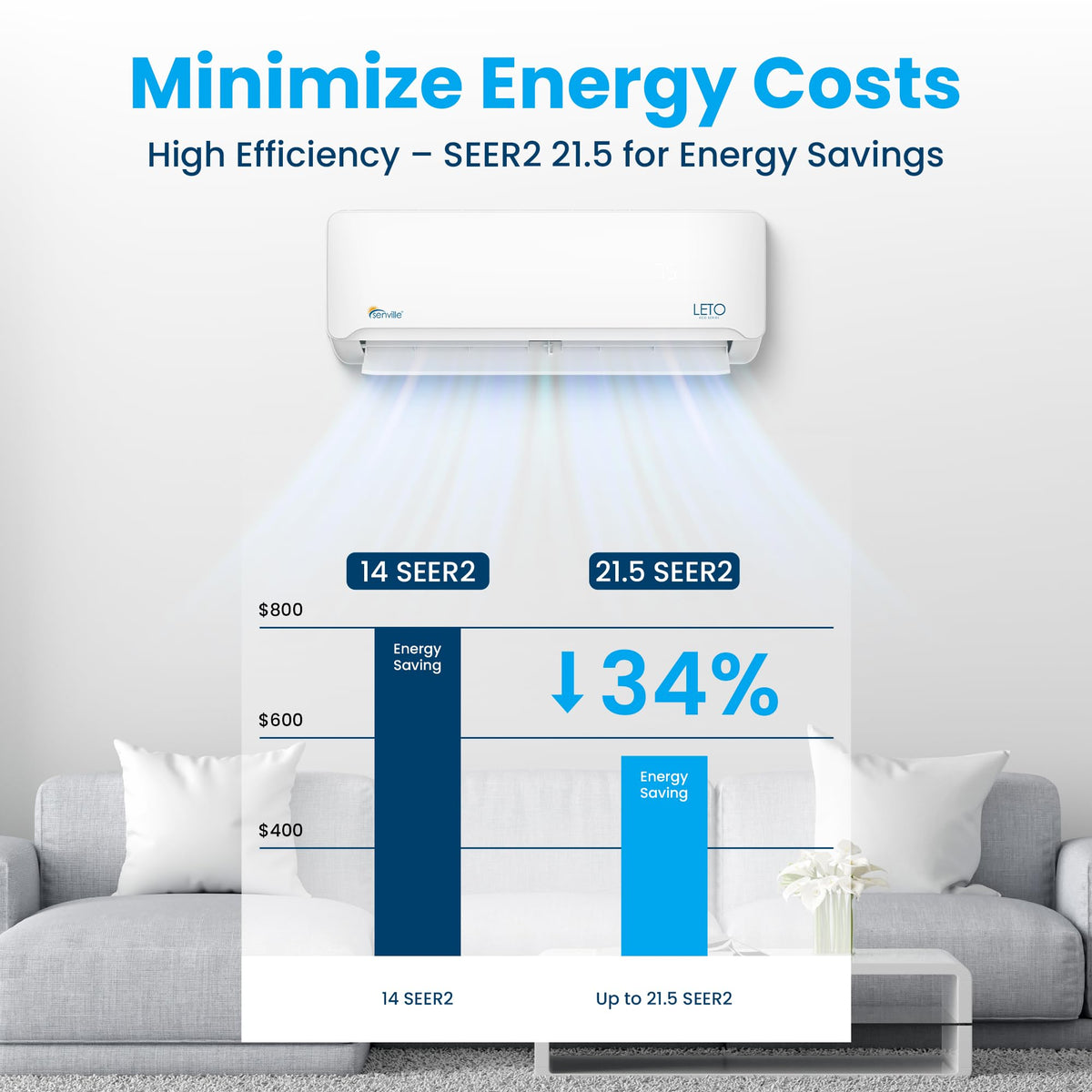 Senville Leto Series Mini Split Air Conditioner Heat Pump, 9000 Btu 208/230V, Inverter, Works With Alexa, 0.75 Ton, White