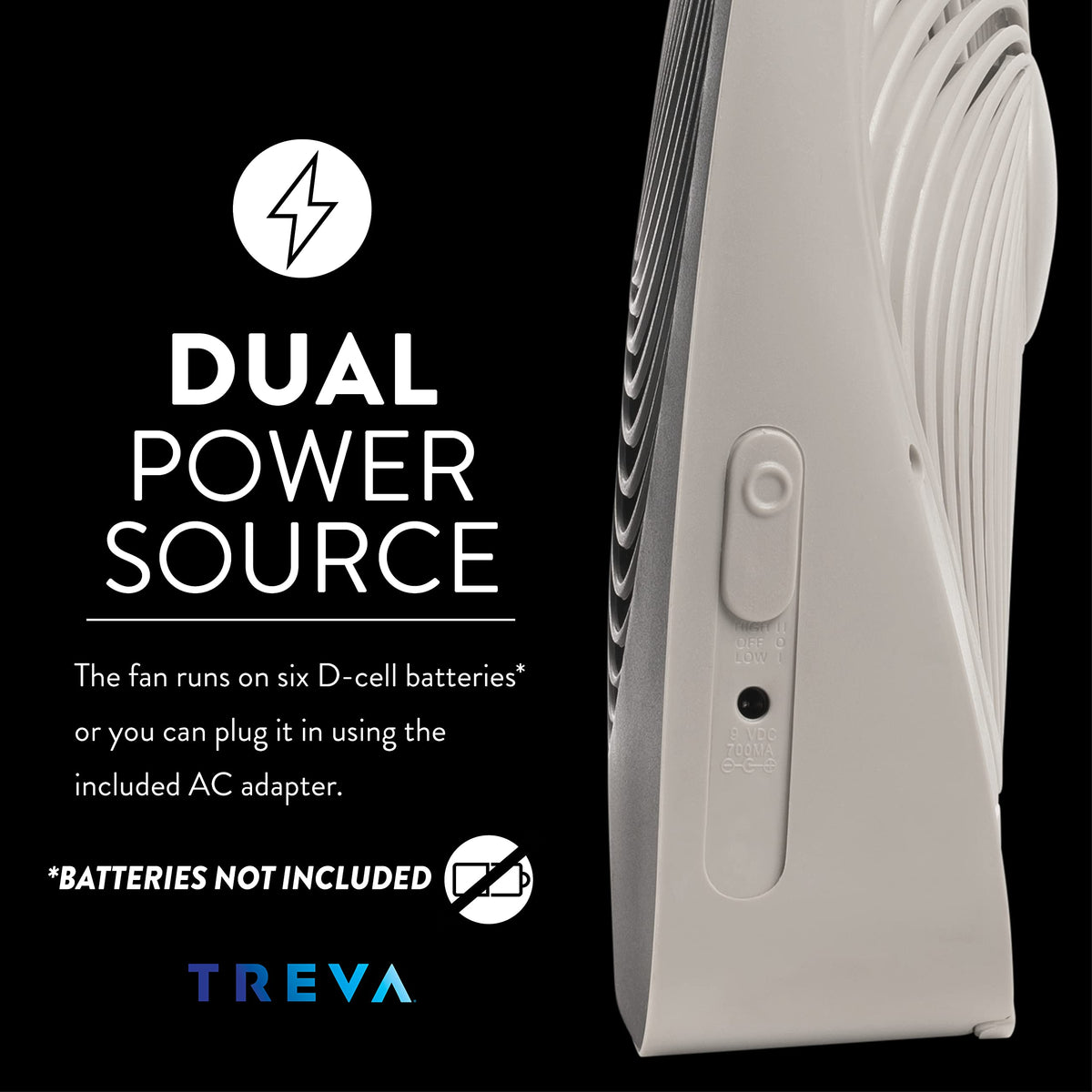 Treva 10-Inch Portable Desk Battery Fan, Powered By Battery And/Or Ac Adapter - Air Circulating With 2 Cooling Speeds, With Buil