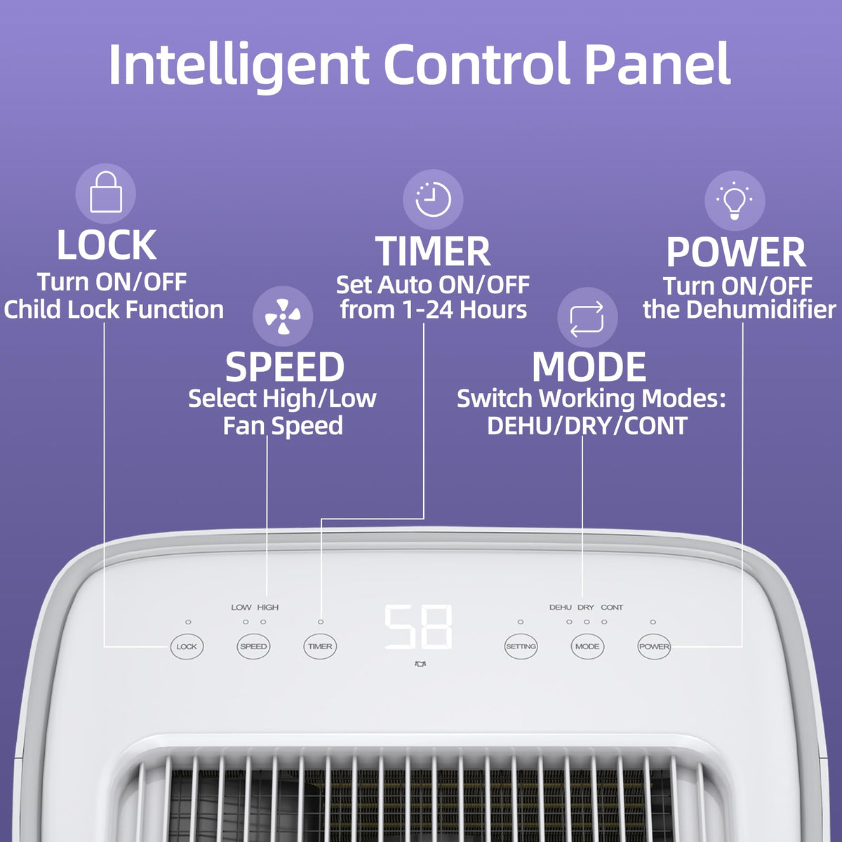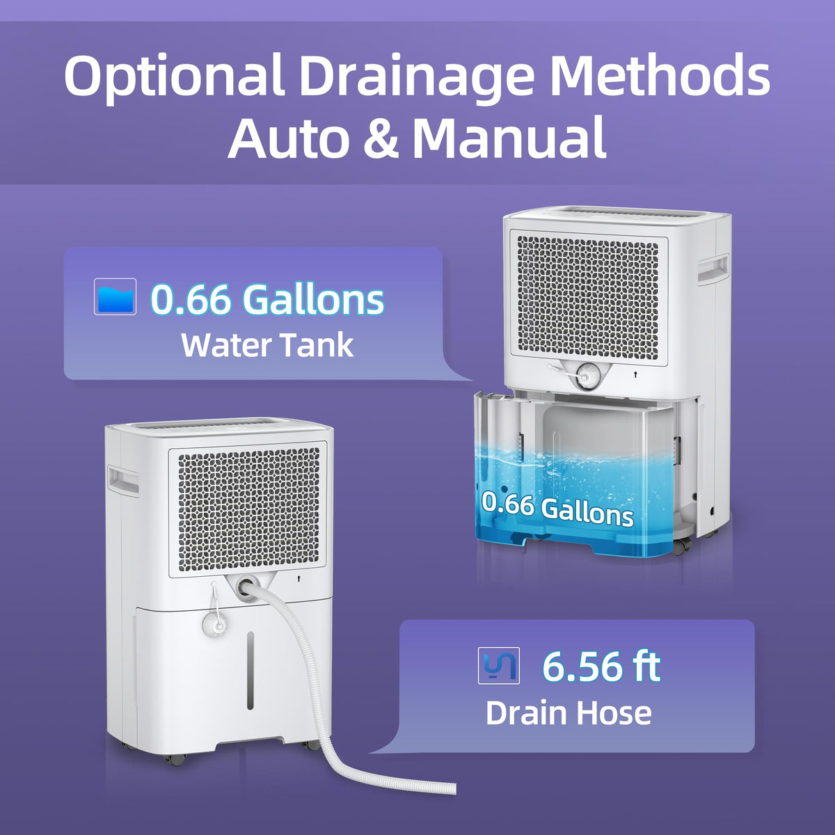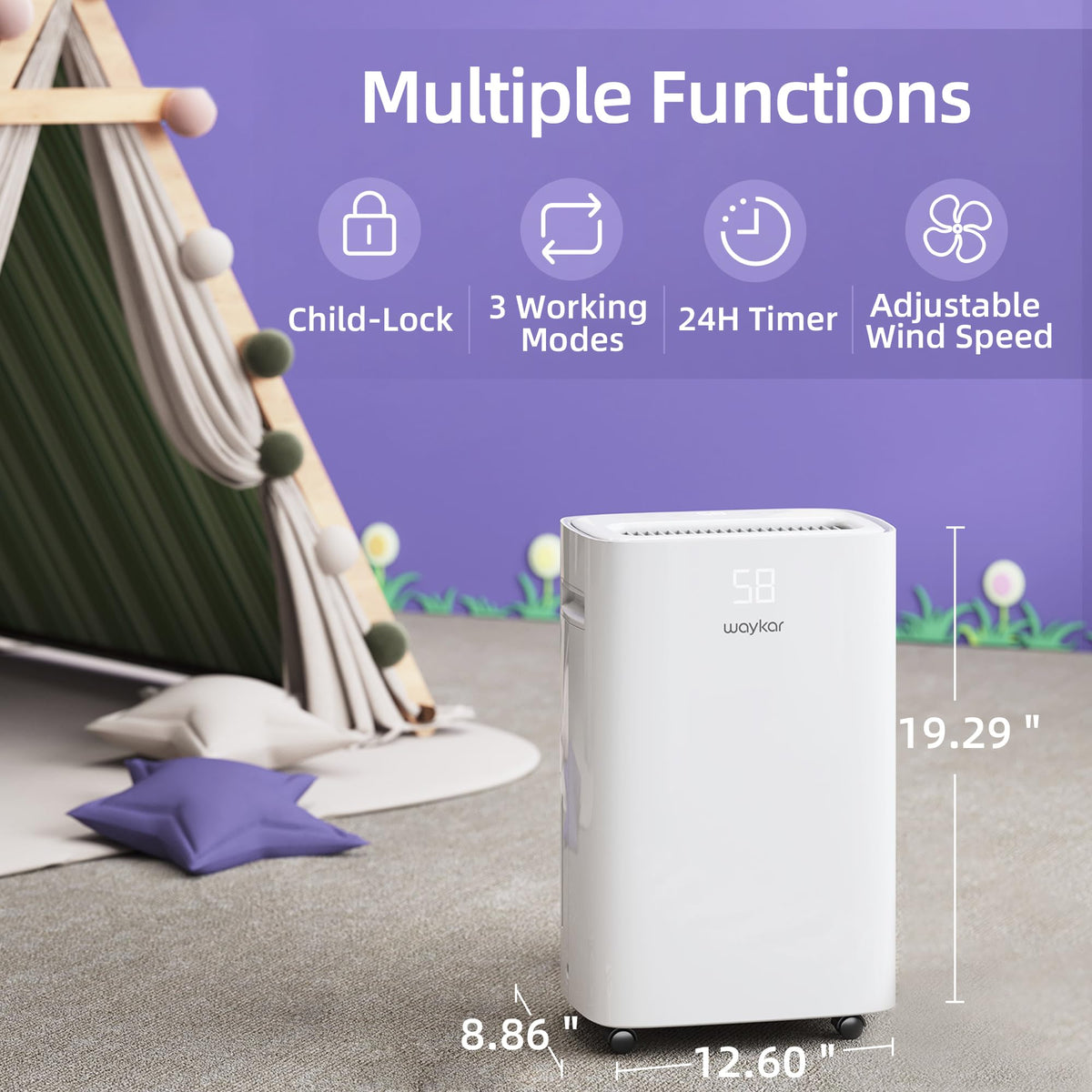 4500 Sqft Dehumidifier: This Dehumidifier Effectively Removes Up To 50 Pints (Under 95Af, 90%Rh Condition) Of Moisture Per Day (Please Note: The Max Dehumidification Capacity Is Up To 50 Pints Under 95Af, 90%Rh Working Condition) In Areas Up To 3,500 Sq Ft With The Adjustable Humidity From 30%Rh To 80%Rh, It Is An Ideal Dehumidifier For Any Damp Basement, Office, Home, Bathroom, Bedroom, Kitchen, Stockroom, Living Room, Laundry Room, Cellar, Crawlspace, Large Spaceroom, And More Innovative & Portable Design: Designed With A Stylish And Sleek Look, This Waykar Dehumidifier Compliments Any Modern Decoration In Your Home The Castor Wheels And Built-In Ergonomic Placed Handle Allows You Move It To Any Spaces With Ease Besides, The Upward Air Outlet Keeps Drying The Air Quickly And Effectively, This Unit Runs With Adjustable Fan Speed That Wonat Disturb You While Sleeping And Working Intelligent Control Panel: This Home Dehumidifier Is Featured With An Intelligent Control Panel Humidity Auto Control: Simply Set The Ideal Humidity Level, It Will Smartly Sense Room Humidity And Maintain Preset Humidity Levels 24H Timer: Allows Preset Operation And Effectively Absorbs Moisture Without Racking Up Your Energy Bill Automatic Shut Off: Shuts Off Automatically When The Bucket Is Full, And Restarts After The Bucket Has Been Emptied Safe And Worry-Free Function: Designed With Safety In Mind, Whose Internal Components Are Made Of Thermally Resistant Materials, Is Also Equipped With The Function Of Safety Standby Mode That Prevents Overheating Overflow Protection And Alarming Functions Available If The Water Tank Is Full For Extra Security Child-Lock Setting And Sleep Mode Function Effectively Prevent Children From Clicking On The Screen To Mess Up And Damage The Appliance Support: All Of Waykar Dehumidifiers Are Covered With 30-Days Money Back If You Are Not Satisfied With The Product, 1 Year Warranty, 2Nd Year Warranty Extension And Lifetime Expert Tech Support Please Dont Hesitate To Contact Us If There Is Any Question, We Will Reply To You Within 24 Hours And Help You Solve The Problems Waykar Customer Support Team Is Always Just One-Email Away