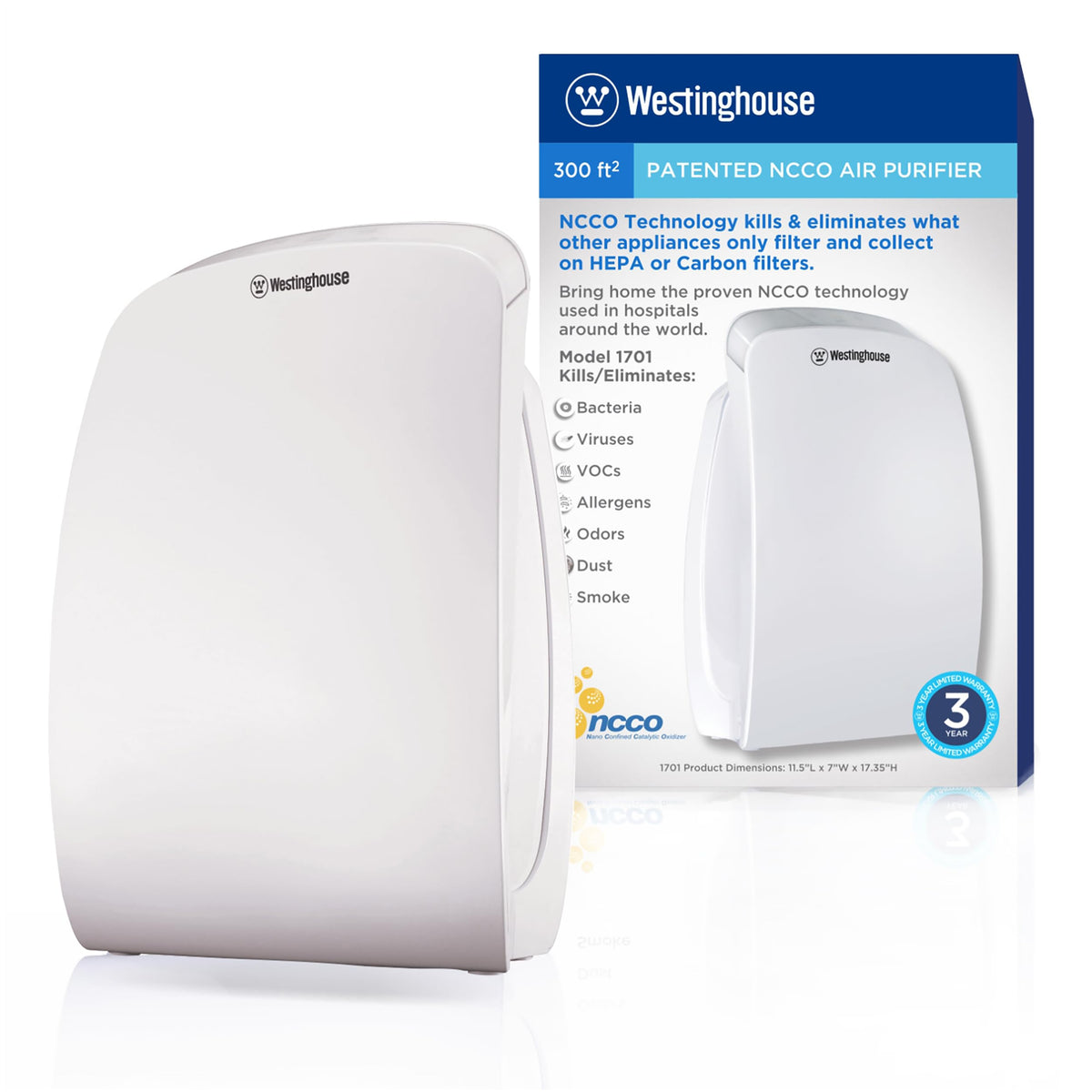 Westinghouse 1701 True Hepa Air Purifier - Medical-Grade Ncco Technology Air Purifiers For Home, Removes Allergens, Pet Dander, Smoke, Odors, Air Purifier 300 Sq Ft.