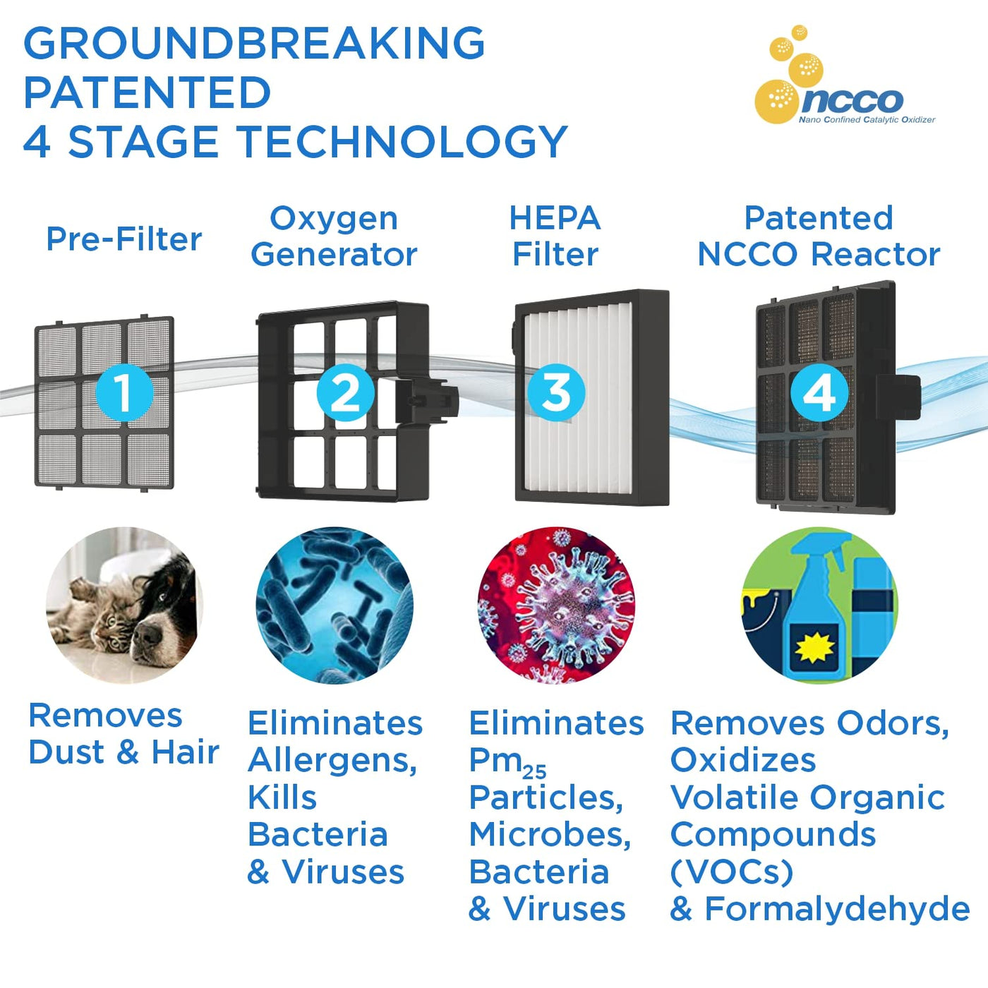 Westinghouse 1701 True Hepa Air Purifier - Medical-Grade Ncco Technology Air Purifiers For Home, Removes Allergens, Pet Dander,