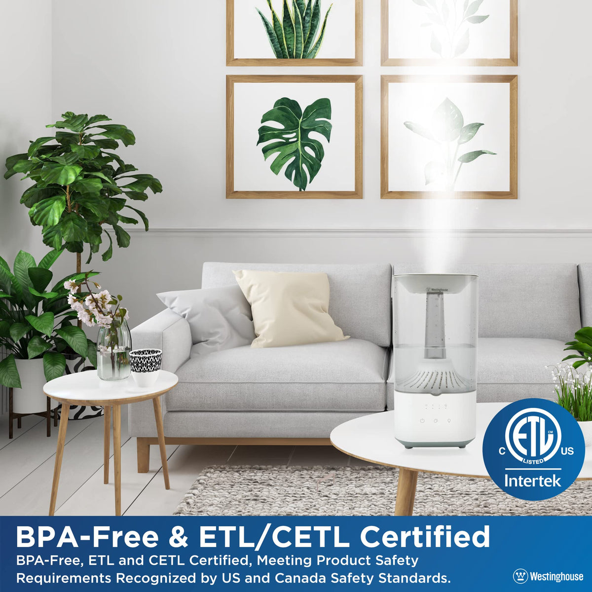 Westinghouse Ultrasonic Cool Mist Humidifier, 4.5L Top Fill Quiet Air Humidifier With Led Night Light And Touch Button Control,