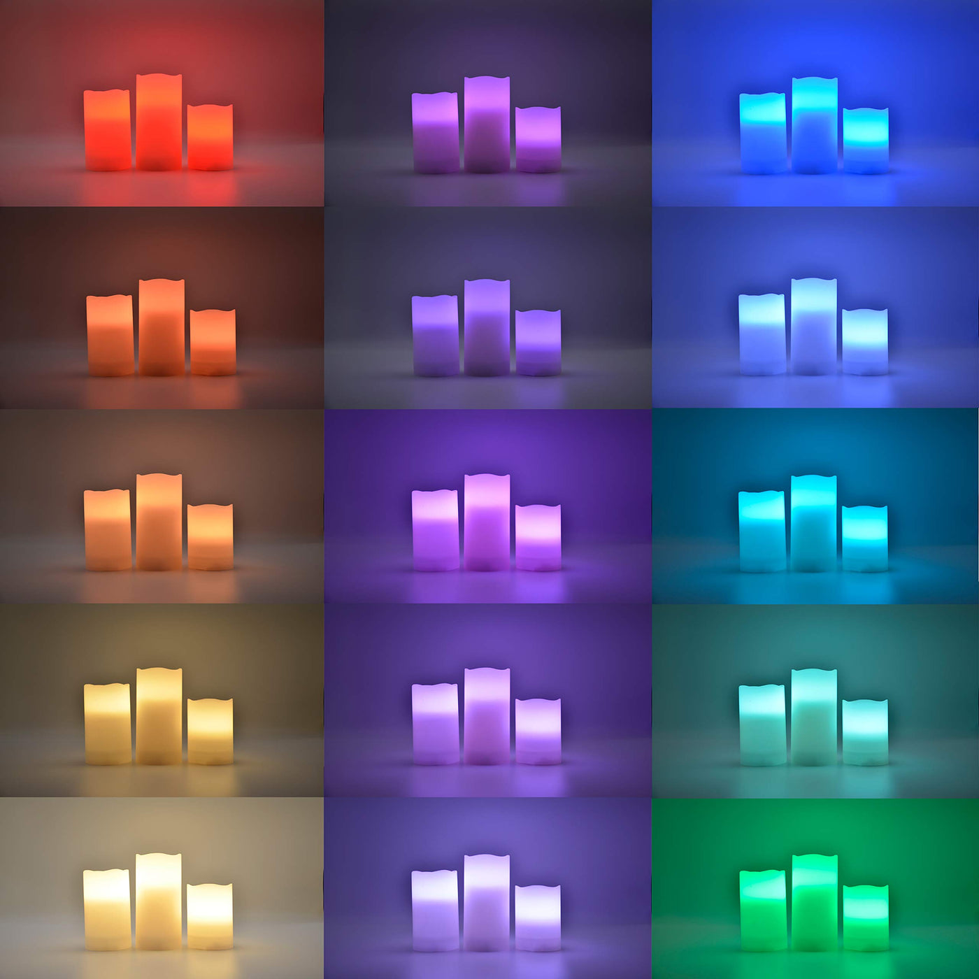 Yakii 3 Pack Color Changing Flameless Candles Real Wax Outdoor With Timer Battery Operated Candles Led Candles With Remote Contr