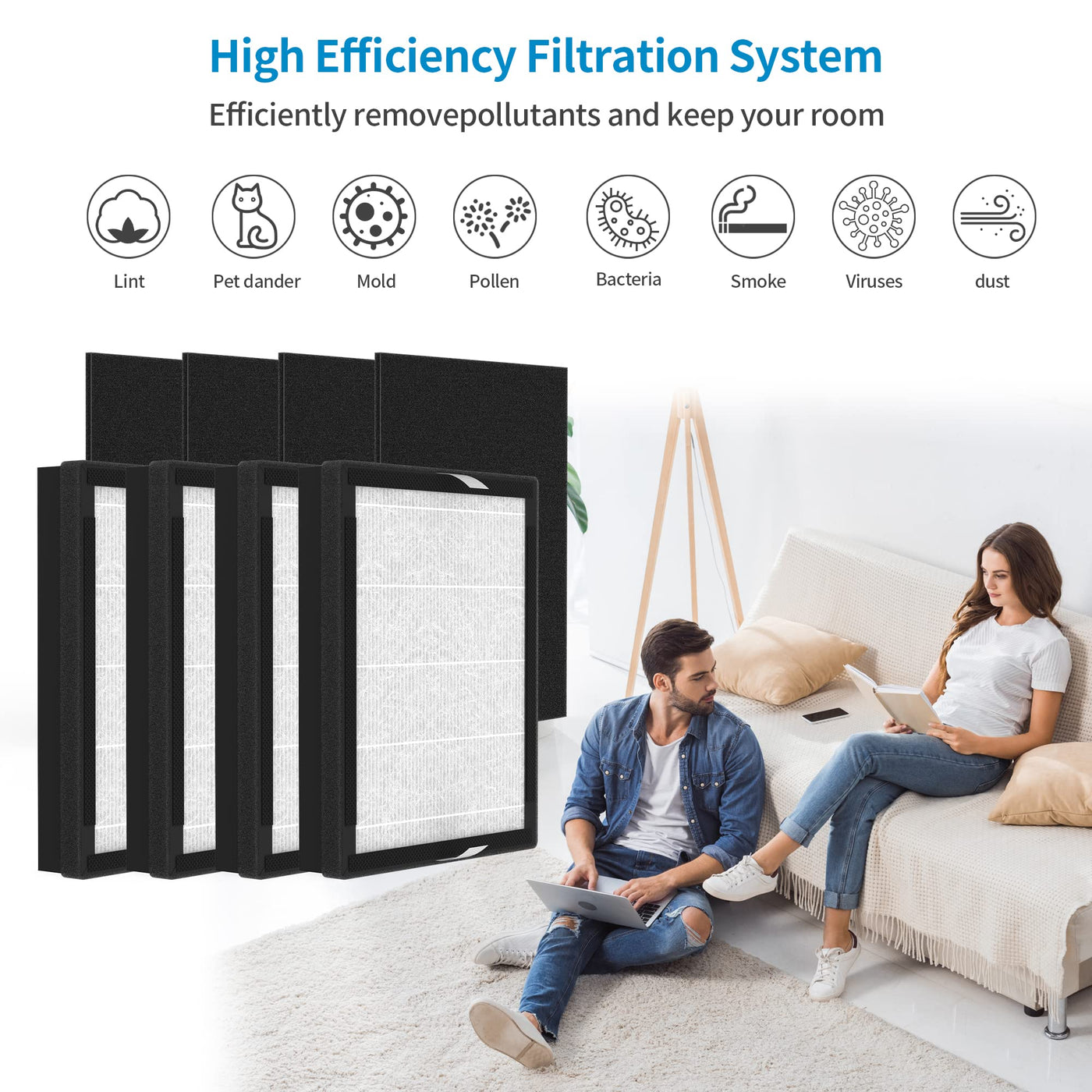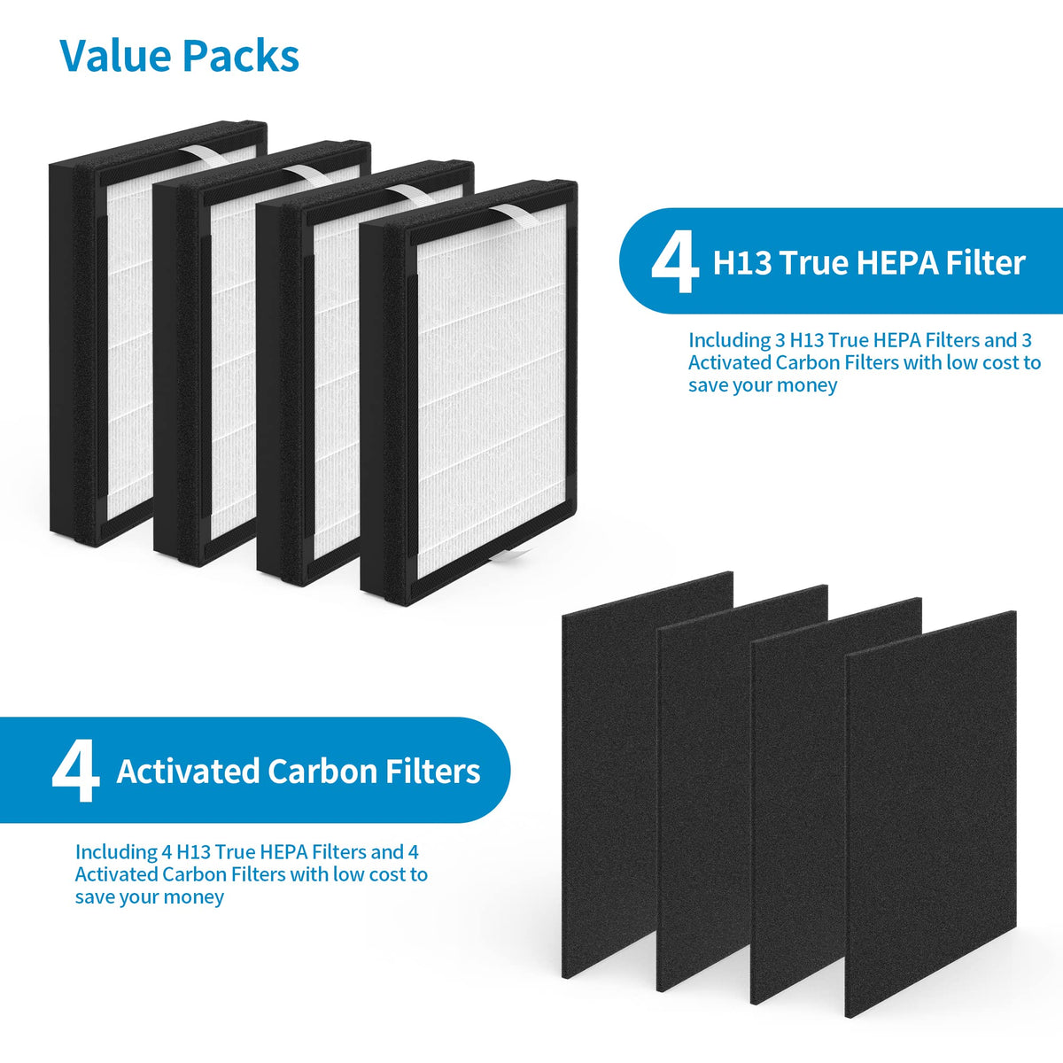 Q: What materials are used in the IAF-H-100A filters?A: The IAF-H-100A filters are made from H13 True HEPA material and activated carbon, which effectively capture allergens, dust, and odors, providing cleaner and fresher air.