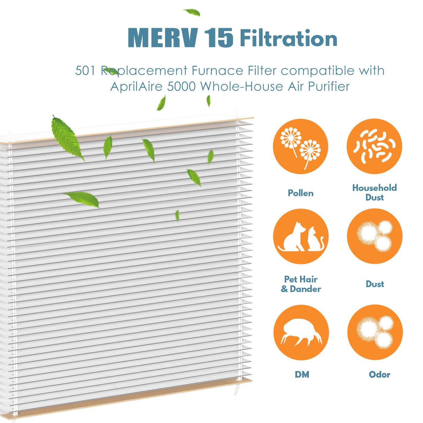 501 Replacement Furnace Filter Compatible With Aprilaire 5000 Whole House Air Purifier 16X25X6 Merv 15, Clean Air & Dust, 2 Pa