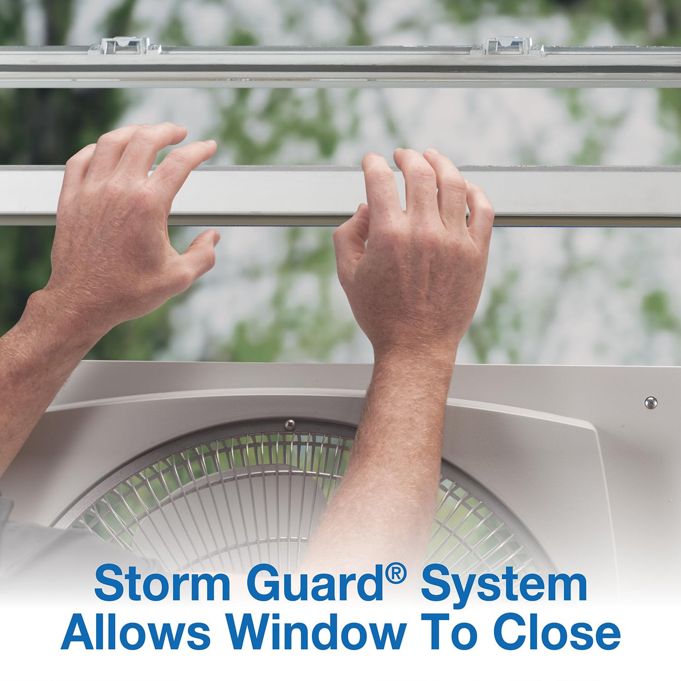 Q: How does the Storm Guard feature work on the Air King 9155?A: The Storm Guard feature allows the fan to be mounted in front of the window, enabling you to close the window behind the fan during bad weather without having to remove it.